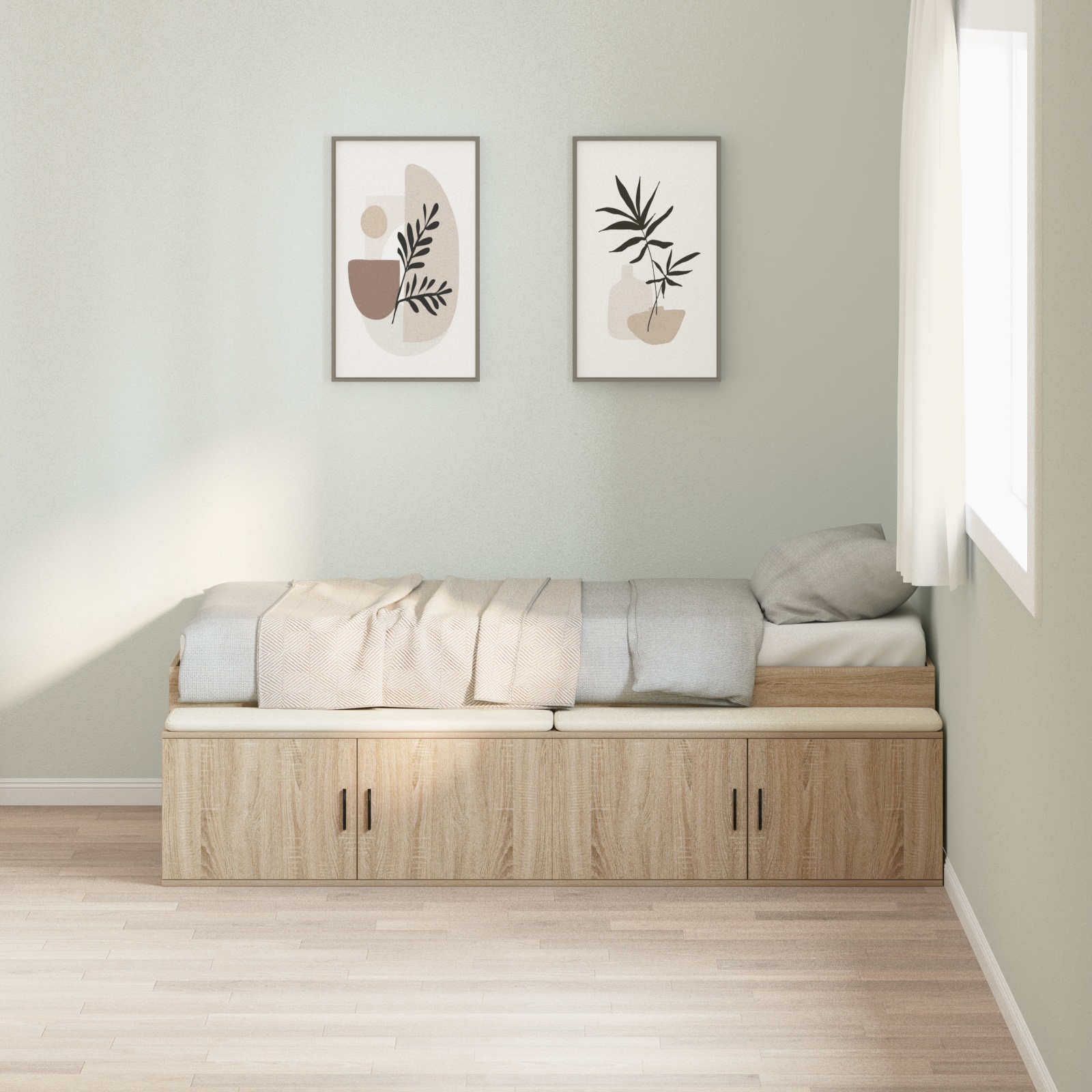Dieses Stauraum Bettgestell kombiniert Stil und Praktikabilität, um jedes Schlafzimmer aufzuwerten und den Stauraum maximal auszunutzen. Mit seiner schlichten weißen Oberfläche und dem minimalistischen Look fügt es sich mühelos in verschiedene Dekor-Stile ein und ist perfekt für Erwachsene und Familien. Dieses Stauraum Bettgestell kombiniert modernes Design mit praktischen Features. Es hat eine stylische weiße Oberfläche und eine stabile Holzwerkstoffkonstruktion, die langlebig und robust ist. Das großzügige Design bietet viel Stauraum für Bettwäsche, saisonale Kleidung oder persönliche Gegenstände und hilft, deinen Wohnbereich ordentlich und organisiert zu halten. Die Haltbarkeit ist wichtig: aus hochwertigem Holzwerkstoff gefertigt, der sein schickes Aussehen auch bei täglichem Gebrauch behält. Die matte Oberfläche passt perfekt in verschiedene Dekorstile und verleiht deinem Schlafzimmer eine elegante Note. Perfekt für kleine Wohnungen – dieses Stauraum Bettgestell hilft dir, die Organisation zu verbessern und schafft gleichzeitig eine gemütliche und einladende Atmosphäre.