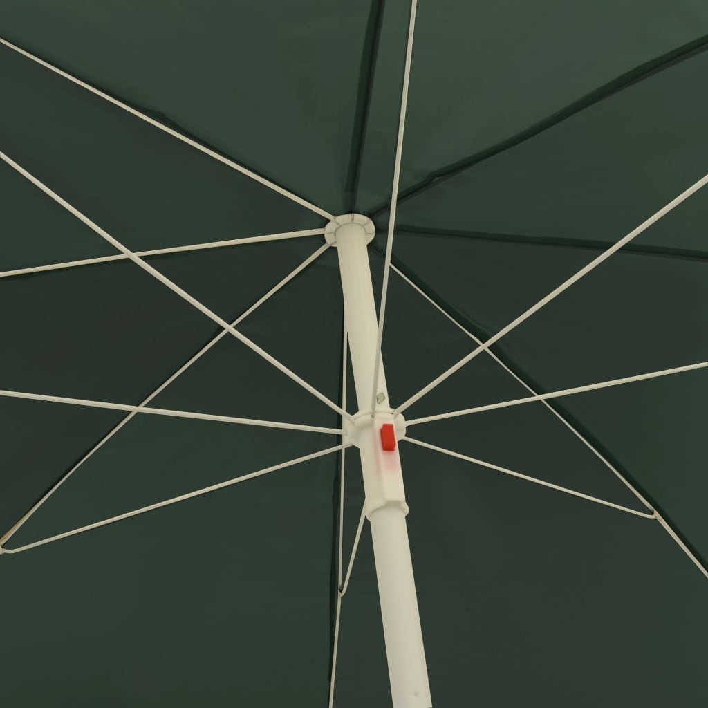 Der Strandschirm besteht aus UV-beständigem und farbechtem Polyester, um den perfekten Schutz vor den schädlichen UV-Strahlen der Sonne zu bieten. Die Schirmrippen bieten ausreichend Halt für die Bespannung; außerdem sorgt ein fester Stützstift am Schirmmast dafür, dass der Schirm fest und sicher aufgespannt bleibt. Dieser Schirm kann auch an einem vorhandenen Schirmständer oder in der Mitte von Tischen befestigt werden, falls natürlich ein Schirmloch vorhanden ist. Der Strandschirm lässt sich dank Kippmechanismus in jede Richtung neigen und bietet so optimalen Schutz vor der Sonne.