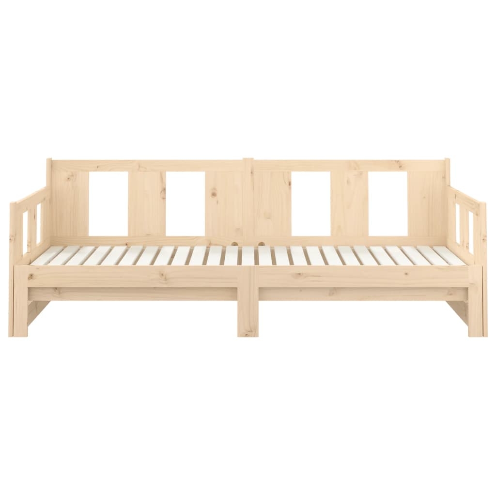Dieses multifunktionale Tagesbett dient nicht nur tagsüber als Sofa, sondern auch nachts als Bett und ist damit eine hervorragende Wahl für Übernachtungsgäste. Egal, wo es aufgestellt wird, dieses praktische Schlafsofa ist ein echter Hingucker! Massives Kiefernholz: Massives Kiefernholz ist ein wunderschönes Naturmaterial. Kiefernholz weist eine gerade Maserung auf und die Aststellen verleihen dem Material seine charakteristische, rustikale Optik.Umwandelbar: Mit einem ausziehbaren Rollbett versehen, lässt sich das Tagesbett aus Holz tagsüber leicht in eine Couch und nachts in ein bequemes Bett verwandeln.Platzsparend: Dieses Tagesbett aus Massivholz maximiert die verfügbare Bodenfläche und bietet gleichzeitig Schlafplatz für zwei Personen, was es zur idealen Wahl für Personen mit begrenztem Wohnraum macht. Hinweis:Die Lieferung beinhaltet nur einen Bettrahmen. Die Matratze ist nicht enthalten. In unserem Shop finden Sie auch passende Matratzen.