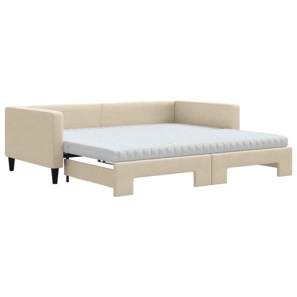 Tagesbett Ausziehbar mit Matratzen Creme 100x200 cm Stoff