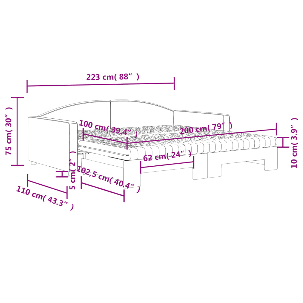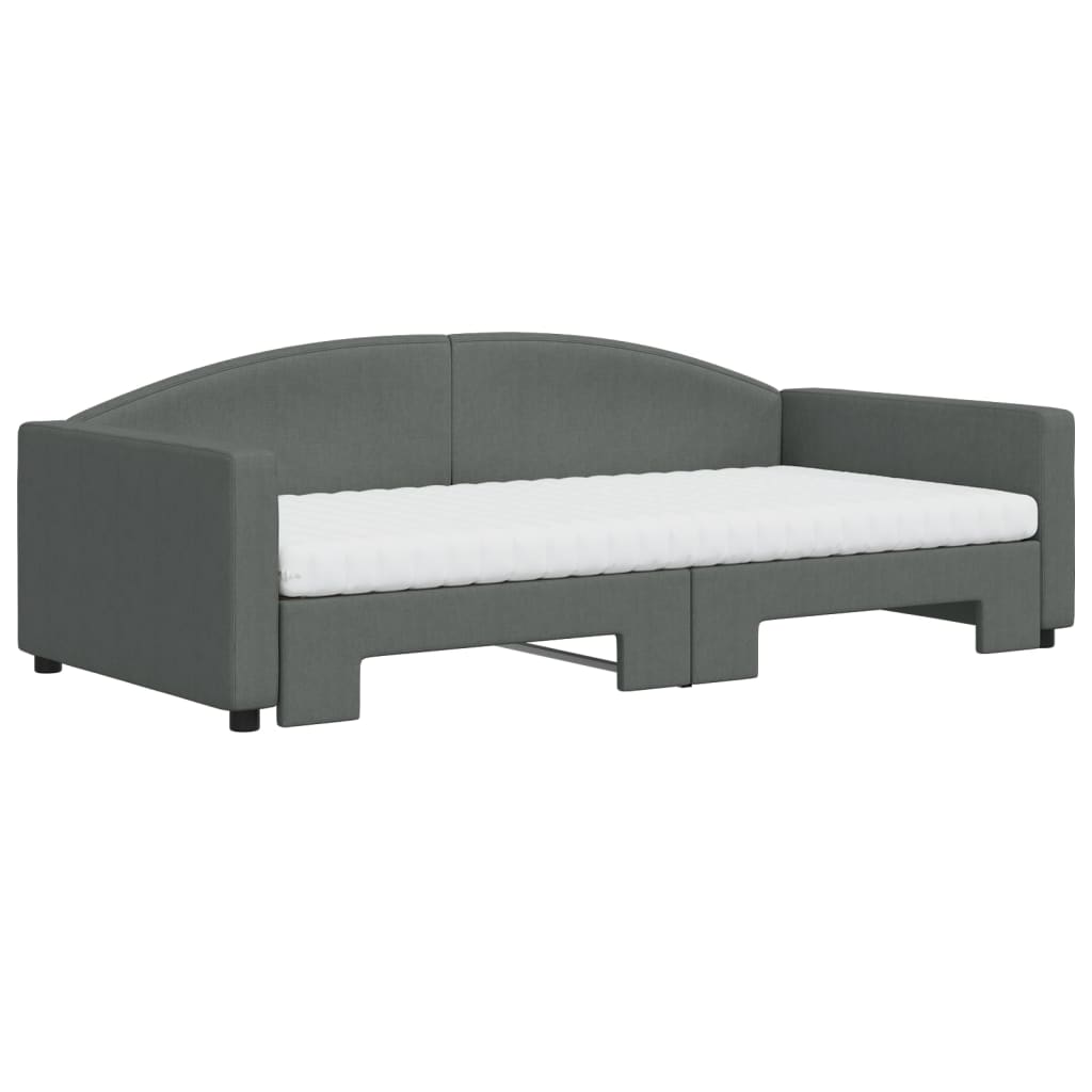 Dieses ausziehbare 2-in-1-Tagesbett, das sowohl als Sofa als auch als Bett dient, ist eine praktische und auffällige Ergänzung zu deinem Wohn- oder Schlafzimmer. Vielseitiges Tagesbett: Das Schlafsofa fungiert tagsüber als Sofa und lässt sich nachts durch Ausziehen des Rollkastens leicht in ein Doppelbett verwandeln - eine praktische Lösung, um Gästen einen bequemen Schlafplatz zu bieten und den Platz zu maximieren.Komfortable Schaumstoffmatratze: Dieses Schlafbett wird samt zwei Schaumstoffmatratzen geliefert, die für maximalen Halt und optimalen Komfort sorgen.Strapazierfähiger Stoff und robuste Konstruktion: Dieses Tagesbettsofa besitzt einen stabilen Rahmen aus Holz und Metall und ist mit strapazierfähigem und bequemem Stoff bezogen.Modernes Design: Das Couchbett weist ein modernes Design auf, das sich durch klare Linien, einen minimalistischen Look sowie Natürlichkeit auszeichnet und deiner Einrichtung eine moderne Note verleiht!
