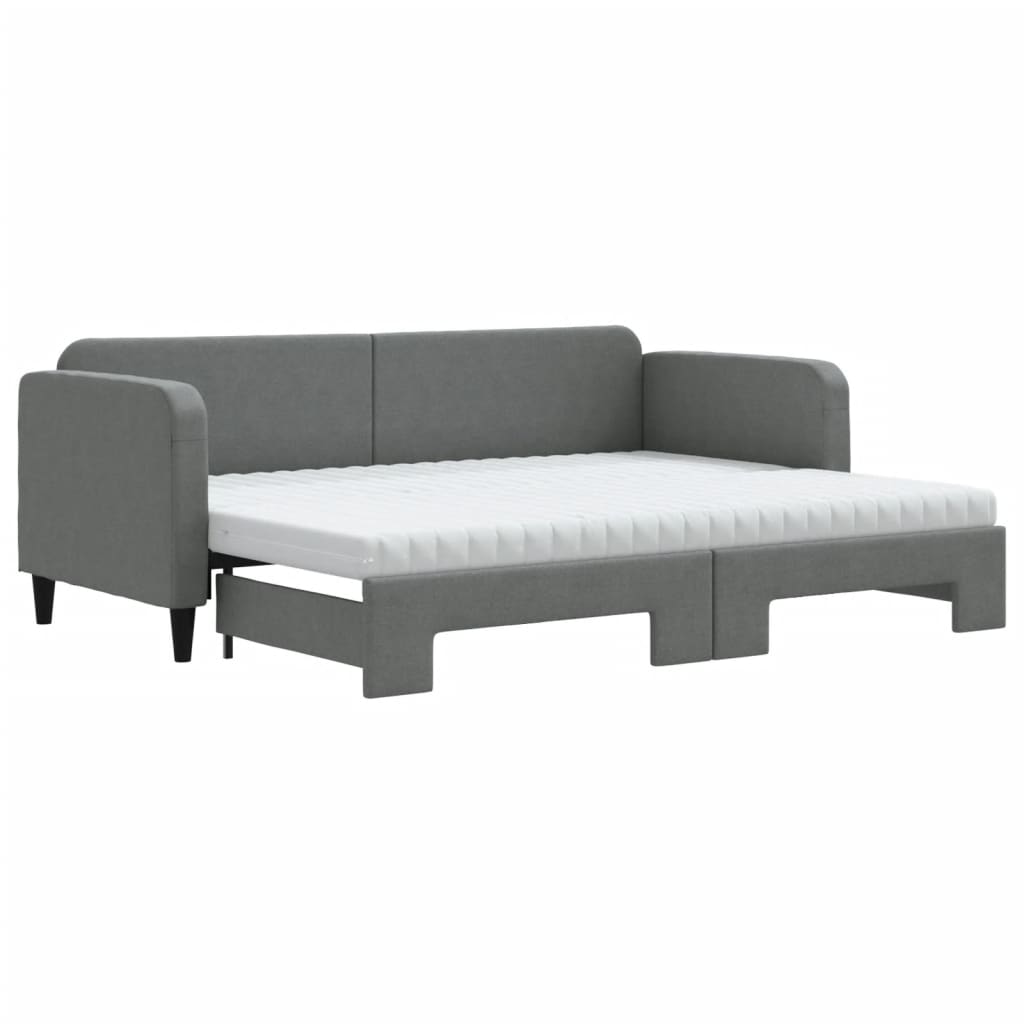 Tagesbett Ausziehbar mit Matratzen Dunkelgrau 80x200 cm Stoff