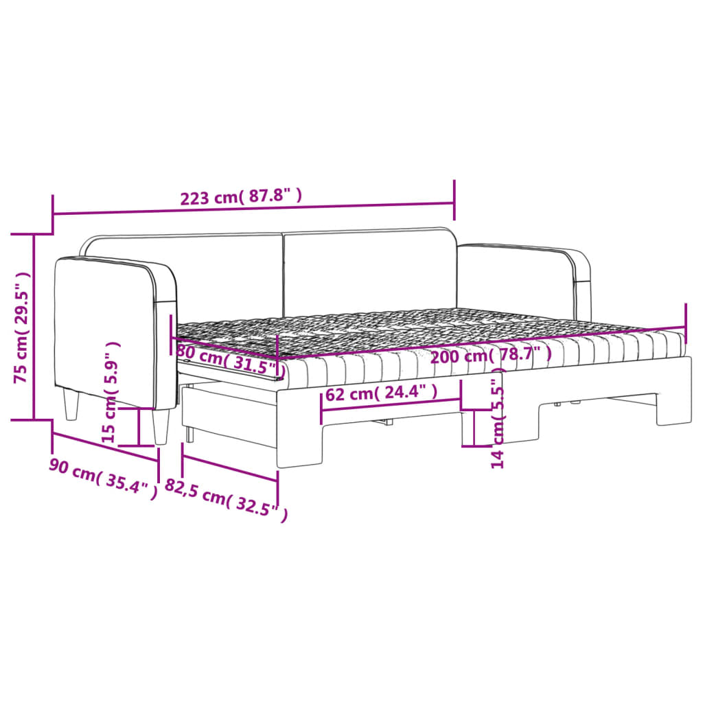 Dieses ausziehbare 2-in-1-Tagesbett, das sowohl als Sofa als auch als Bett dient, ist eine praktische und auffällige Ergänzung zu deinem Wohn- oder Schlafzimmer. Vielseitiges Tagesbett: Das Schlafsofa fungiert tagsüber als Sofa und lässt sich nachts durch Ausziehen des Rollkastens leicht in ein Doppelbett verwandeln - eine praktische Lösung, um Gästen einen bequemen Schlafplatz zu bieten und den Platz zu maximieren.Komfortable Schaumstoffmatratze: Dieses Schlafbett wird samt zwei Schaumstoffmatratzen geliefert, die für maximalen Halt und optimalen Komfort sorgen.Strapazierfähiger Stoff und robuste Konstruktion: Dieses Tagesbettsofa besitzt einen stabilen Rahmen aus Holz und Metall und ist mit strapazierfähigem und bequemem Stoff bezogen.