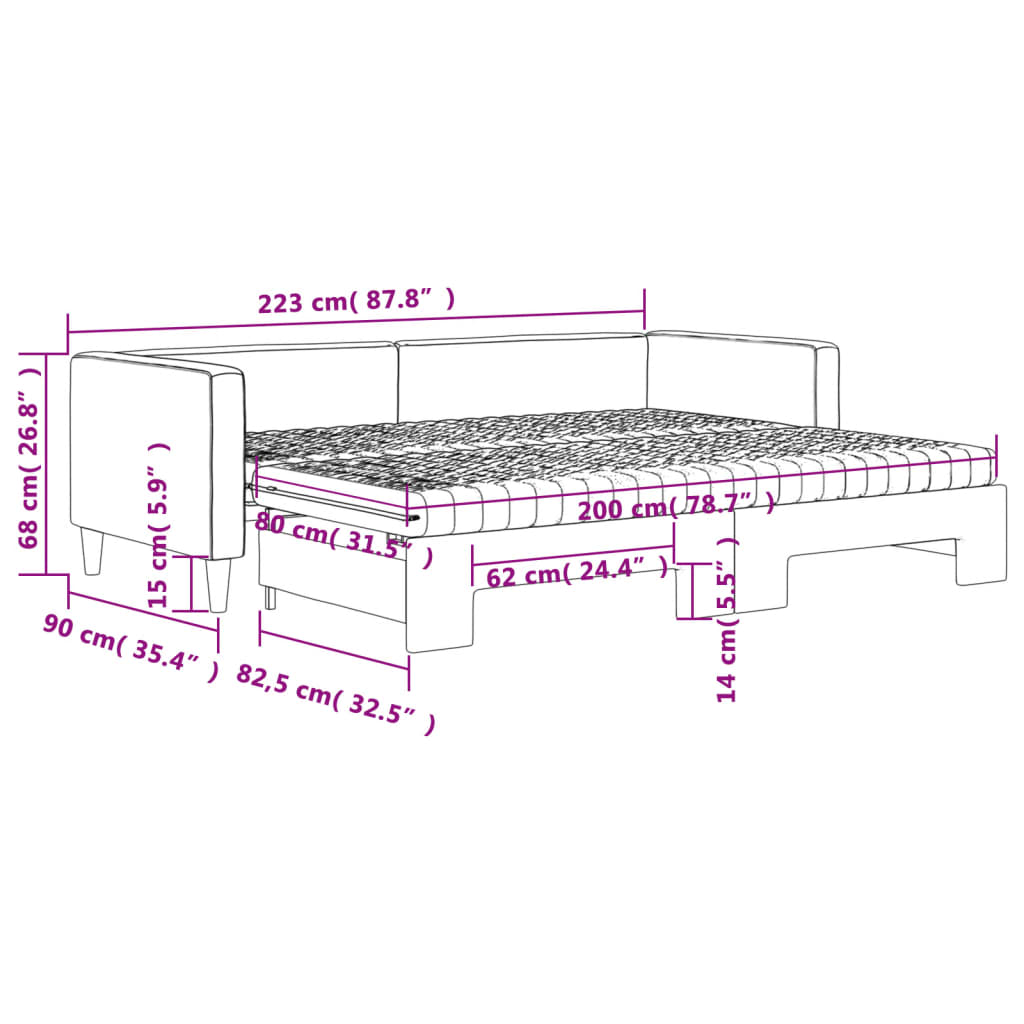 Dieses ausziehbare 2-in-1-Tagesbett, das sowohl als Sofa als auch als Bett dient, ist eine praktische und auffällige Ergänzung zu deinem Wohn- oder Schlafzimmer. Vielseitiges Tagesbett: Das Schlafsofa fungiert tagsüber als Sofa und lässt sich nachts durch Ausziehen des Rollkastens leicht in ein Doppelbett verwandeln - eine praktische Lösung, um Gästen einen bequemen Schlafplatz zu bieten und den Platz zu maximieren. Komfortable Schaumstoffmatratze: Dieses Schlafbett wird samt zwei Schaumstoffmatratzen geliefert, die für maximalen Halt und optimalen Komfort sorgen. Strapazierfähiger Stoff und robuste Konstruktion: Dieses Tagesbettsofa besitzt einen stabilen Rahmen aus Holz und Metall und ist mit strapazierfähigem und bequemem Stoff bezogen.