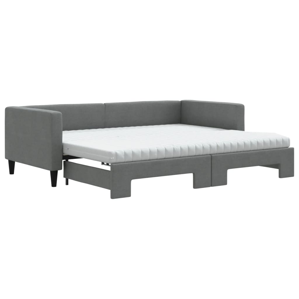 Tagesbett Ausziehbar mit Matratzen Dunkelgrau 90x190 cm Stoff