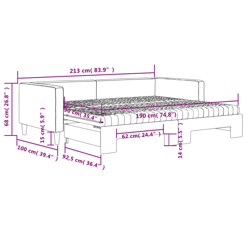 Dieses ausziehbare 2-in-1-Tagesbett, das sowohl als Sofa als auch als Bett dient, ist eine praktische und auffällige Ergänzung zu deinem Wohn- oder Schlafzimmer. Vielseitiges Tagesbett: Das Schlafsofa fungiert tagsüber als Sofa und lässt sich nachts durch Ausziehen des Rollkastens leicht in ein Doppelbett verwandeln - eine praktische Lösung, um Gästen einen bequemen Schlafplatz zu bieten und den Platz zu maximieren. Komfortable Schaumstoffmatratze: Dieses Schlafbett wird samt zwei Schaumstoffmatratzen geliefert, die für maximalen Halt und optimalen Komfort sorgen. Strapazierfähiger Stoff und robuste Konstruktion: Dieses Tagesbettsofa besitzt einen stabilen Rahmen aus Holz und Metall und ist mit strapazierfähigem und bequemem Stoff bezogen.