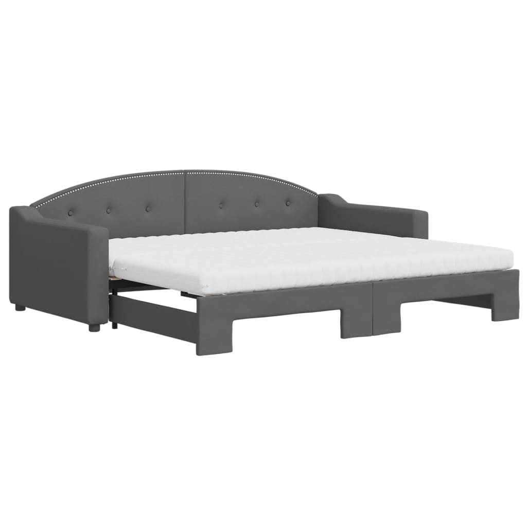 Tagesbett Ausziehbar mit Matratzen Dunkelgrau 90x200 cm Stoff