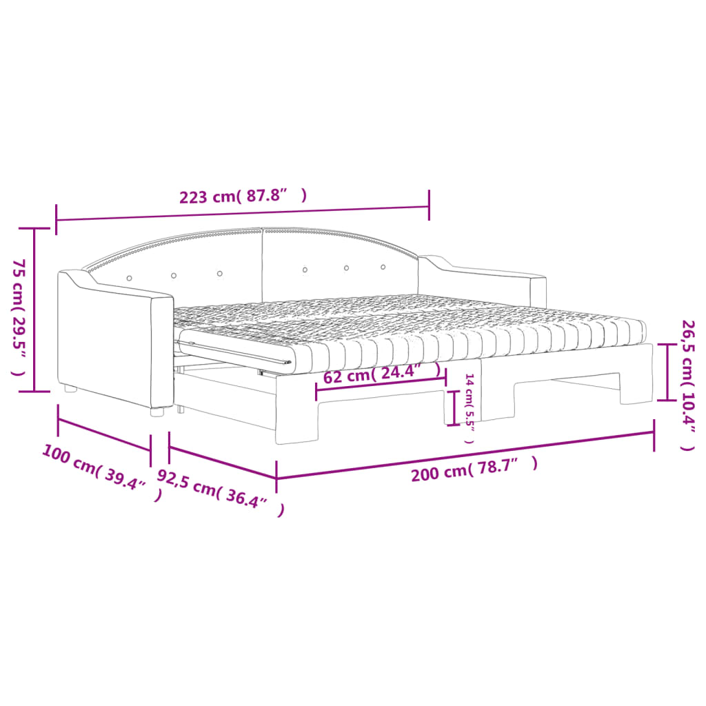 Dieses ausziehbare 2-in-1-Tagesbett, das sowohl als Sofa als auch als Bett dient, ist eine praktische und auffällige Ergänzung zu deinem Wohn- oder Schlafzimmer. Vielseitiges Tagesbett: Das Schlafsofa fungiert tagsüber als Sofa und lässt sich nachts durch Ausziehen des Rollkastens leicht in ein Doppelbett verwandeln - eine praktische Lösung, um Gästen einen bequemen Schlafplatz zu bieten und den Platz zu maximieren. Komfortable Schaumstoffmatratze: Dieses Schlafbett wird samt zwei Schaumstoffmatratzen geliefert, die für maximalen Halt und optimalen Komfort sorgen. Strapazierfähiger Stoff und robuste Konstruktion: Dieses Tagesbettsofa besitzt einen stabilen Rahmen aus Holz und Metall und ist mit strapazierfähigem und bequemem Stoff bezogen.