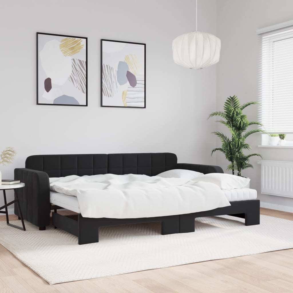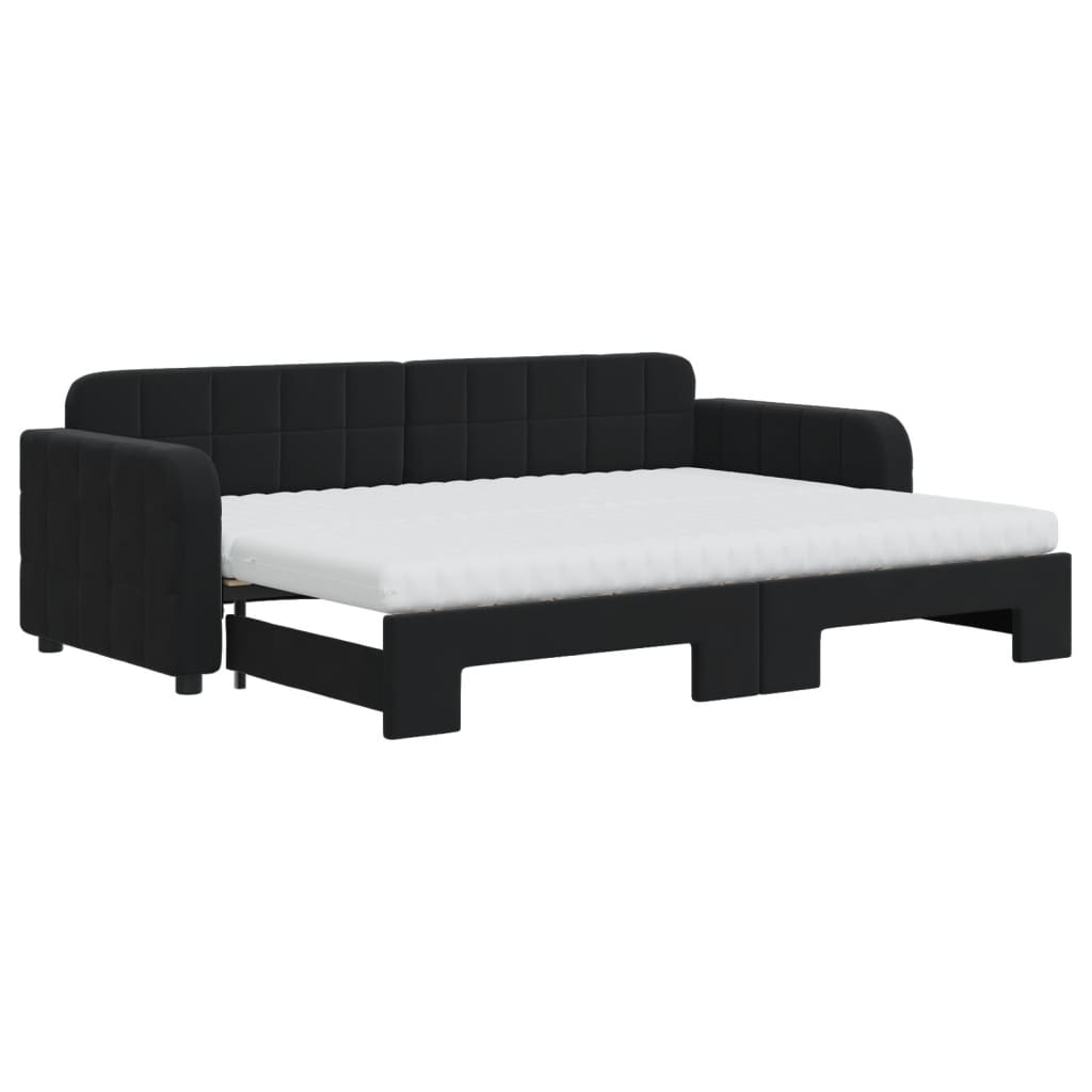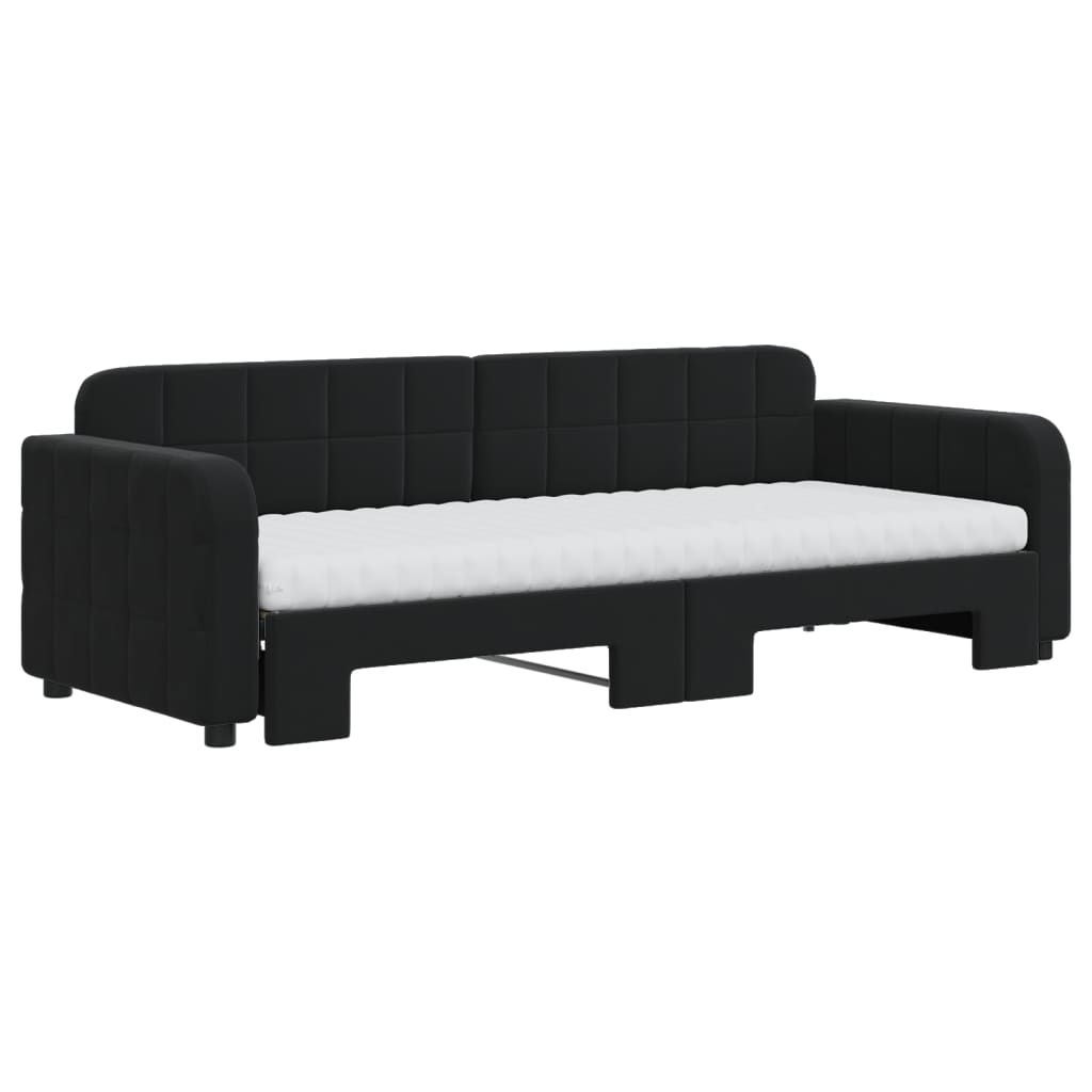 Tagesbett Ausziehbar mit Matratzen Schwarz 80x200 cm Samt