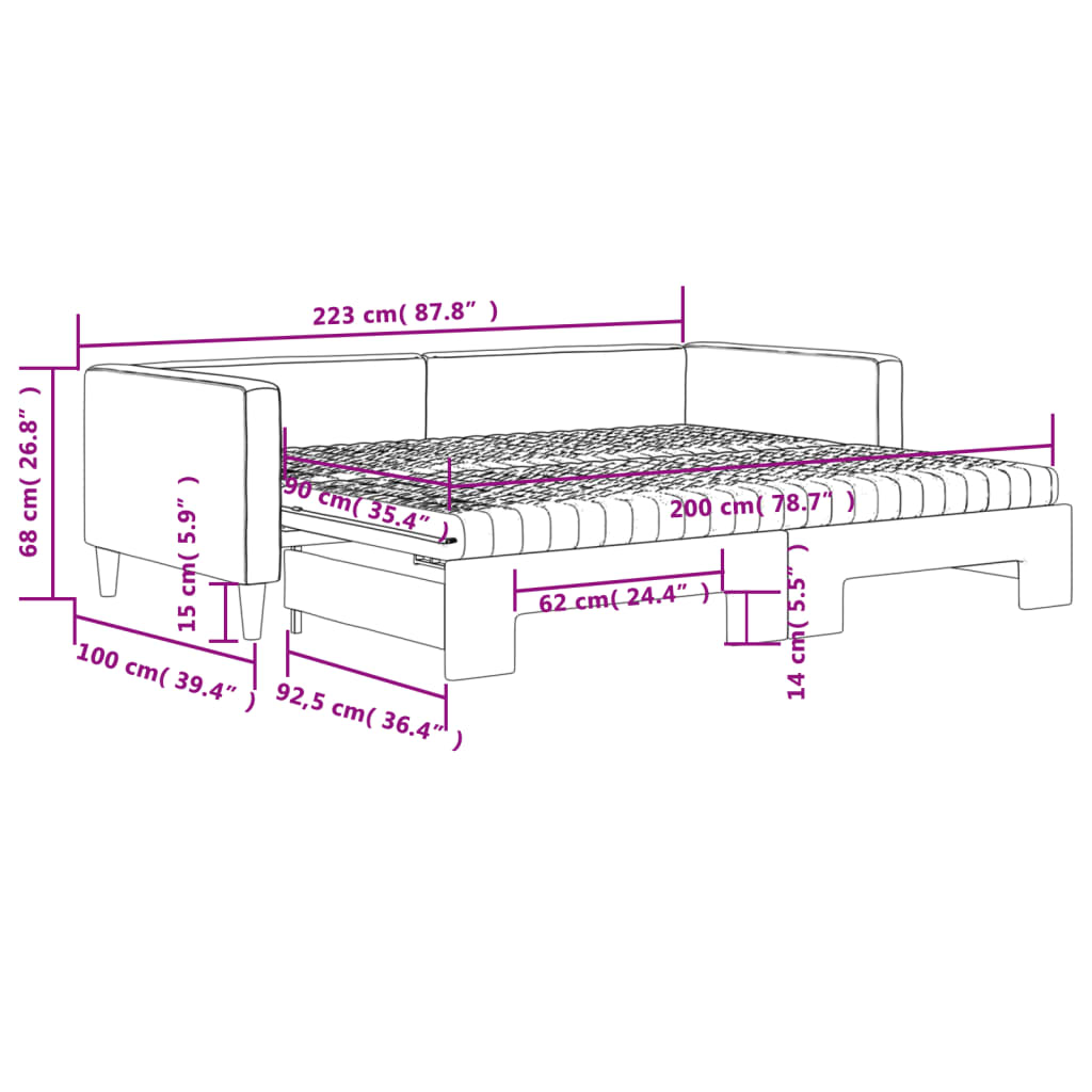 Dieses ausziehbare 2-in-1-Tagesbett, das sowohl als Sofa als auch als Bett dient, ist eine praktische und auffällige Ergänzung zu deinem Wohn- oder Schlafzimmer. Vielseitiges Tagesbett: Das Schlafsofa fungiert tagsüber als Sofa und lässt sich nachts durch Ausziehen des Rollkastens leicht in ein Doppelbett verwandeln - eine praktische Lösung, um Gästen einen bequemen Schlafplatz zu bieten und den Platz zu maximieren. Komfortable Schaumstoffmatratze: Dieses Schlafbett wird samt zwei Schaumstoffmatratzen geliefert, die für maximalen Halt und optimalen Komfort sorgen. Strapazierfähiger Stoff und robuste Konstruktion: Dieses Tagesbettsofa besitzt einen stabilen Rahmen aus Holz und Metall und ist mit strapazierfähigem und bequemem Stoff bezogen.