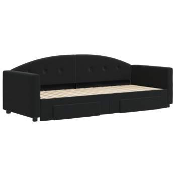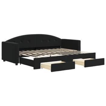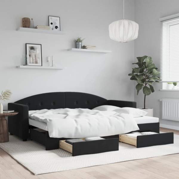 Dieses ausziehbare 2-in-1-Tagesbett mit Schubladen, das sowohl als Sofa als auch als Bett dient, ist eine praktische und auffällige Ergänzung zu deinem Wohn- oder Schlafzimmer. Vielseitiges Tagesbett: Das Schlafsofa fungiert tagsüber als Sofa und lässt sich nachts durch Ausziehen des Rollkastens leicht in ein Doppelbett verwandeln - eine praktische Lösung, um Gästen einen bequemen Schlafplatz zu bieten und den Platz zu maximieren.Reichlich Stauraum: Dieses Gästebett verfügt über zwei Schubladen mit Rollen, die reichlich Stauraum für Kleidung, Socken, Spielzeug, Kissen usw. bieten.Weicher Samt und robuste Konstruktion: Dieses Schlafsofa besitzt einen stabilen Rahmen aus Holz und Metall und ist mit weichem und bequemem Samt bezogen. Gut zu wissen:Matratzen sind bei diesem Bett nicht im Lieferumfang enthalten. Wir bieten jedoch eine große Auswahl an Matratzen an. Du kannst in unserem Shop nach passenden Matratzen suchen.