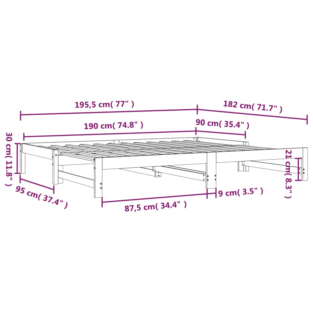 - Abmessungen des Tagesbettes (nicht ausgezogen): 195,5 x 95 x 30 cm (L x B x H)