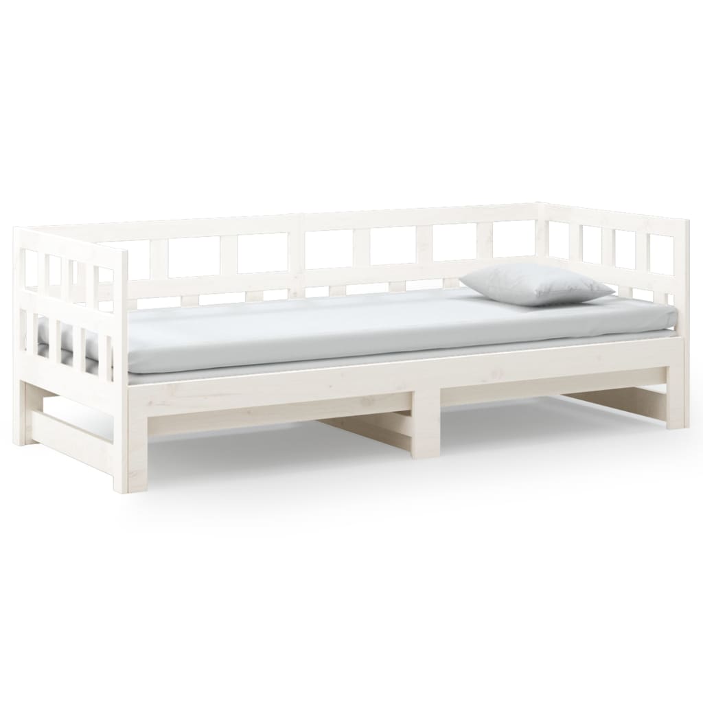 Das multifunktionale Tagesbett kann tagsüber als Sofa und nachts als Bett verwendet werden, um Übernachtungsgästen einen gemütlichen Schlafplatz zu bieten. Erstklassiges Material: Massives Kiefernholz ist ein wunderschönes Naturmaterial. Kiefernholz weist eine gerade Maserung auf und die Aststellen verleihen dem Material seine charakteristische, rustikale Optik.Ausziehbett: Dieses praktische und ausziehbare Gästebett aus Holz lässt sich tagsüber leicht in ein Sofa und nachts in ein komfortables Doppelbett verwandeln, selbst bei begrenztem Platzangebot.Seitenplatte: Dieses Schlafsofa ist mit einer Seitenplatte versehen, die das Herausfallen während des Schlafs verhindert und ein Gefühl der Sicherheit vermittelt. Hinweis:Die Lieferung beinhaltet nur einen Bettrahmen. Die Matratze ist nicht enthalten. In unserem Shop finden Sie auch passende Matratzen.