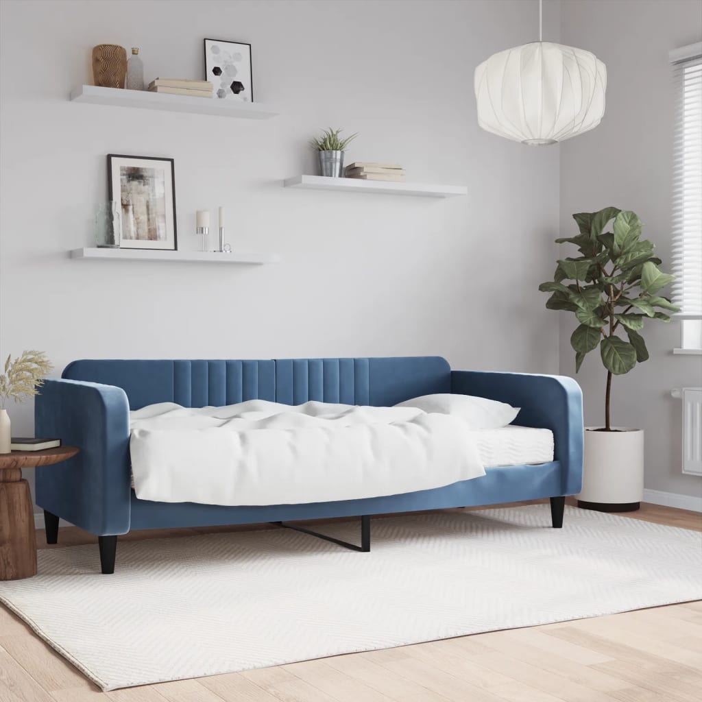Tagesbett mit Matratze Blau 90x200 cm Samt