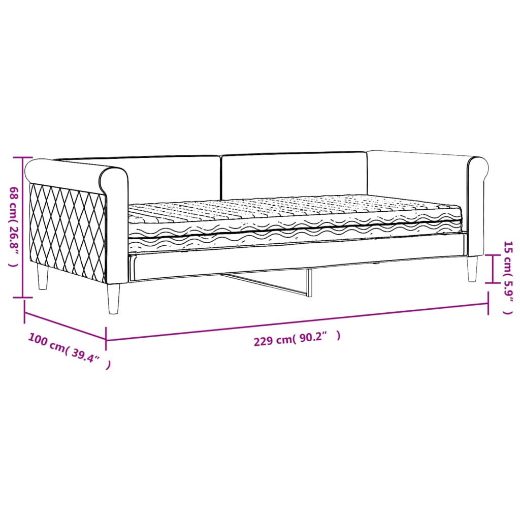 Dieses 2-in-1-Tagesbett mit Matratze, das sowohl als Sofa als auch als Bett dient, ist eine praktische und auffällige Ergänzung zu deinem Wohn- oder Schlafzimmer. Vielseitiges Tagesbett: Das Schlafsofa kann tagsüber als Sofa und nachts als Bett verwendet werden, um Übernachtungsgästen einen gemütlichen Schlafplatz zu bieten.Komfortable Schaumstoffmatratze: Dieses Bett wird samt einer Schaumstoffmatratze geliefert, die maximalen Halt und optimalen Komfort bietet.Weicher Samt und robuste Konstruktion: Dieses Schlafsofa besitzt einen stabilen Rahmen aus Holz und Metall und ist mit weichem und bequemem Samt bezogen.Modernes Design: Das Couchbett weist ein modernes Design auf, das sich durch klare Linien, einen minimalistischen Look sowie Natürlichkeit auszeichnet und deiner Einrichtung eine moderne Note verleiht!