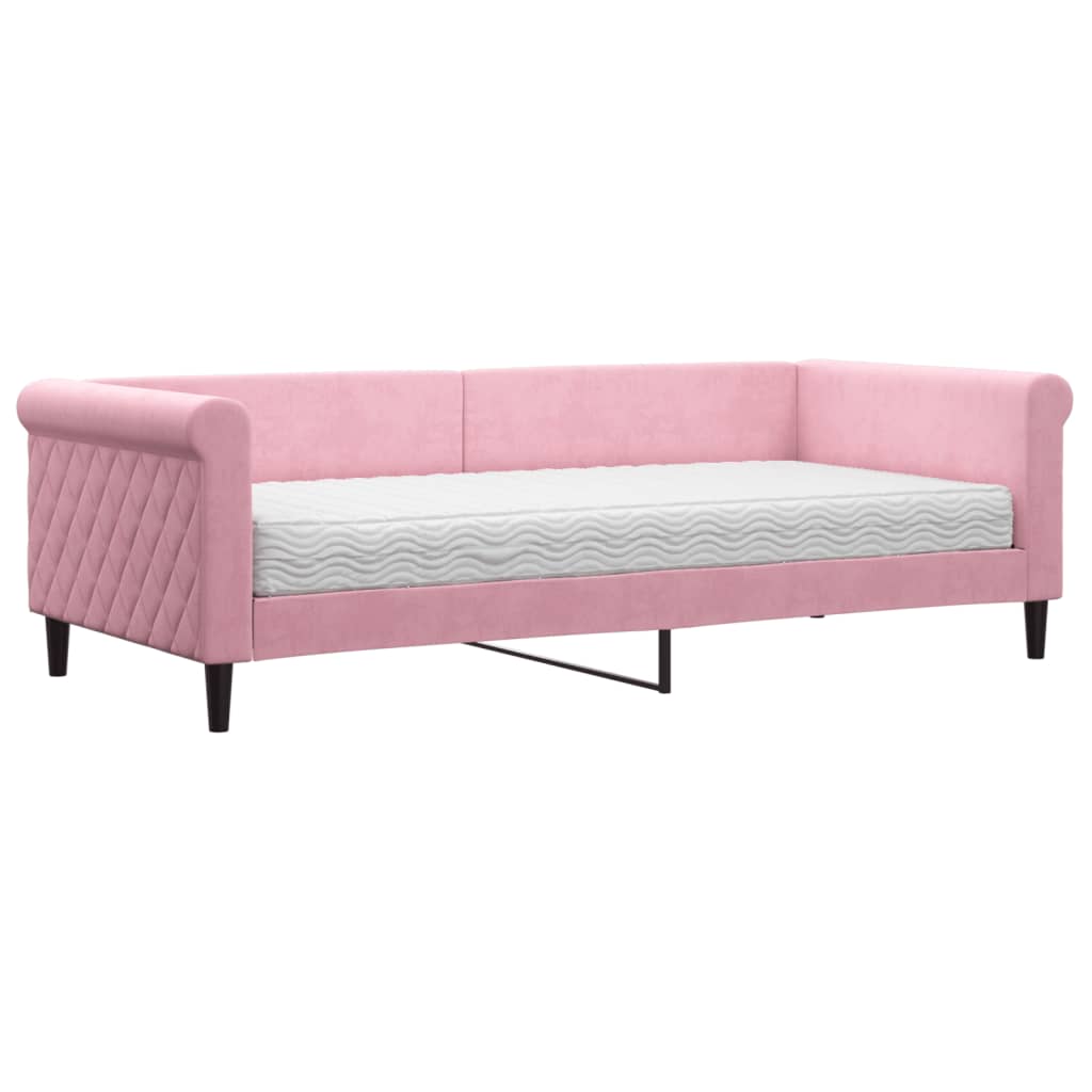 Dieses 2-in-1-Tagesbett mit Matratze, das sowohl als Sofa als auch als Bett dient, ist eine praktische und auffällige Ergänzung zu deinem Wohn- oder Schlafzimmer. Vielseitiges Tagesbett: Das Schlafsofa kann tagsüber als Sofa und nachts als Bett verwendet werden, um Übernachtungsgästen einen gemütlichen Schlafplatz zu bieten.Komfortable Schaumstoffmatratze: Dieses Bett wird samt einer Schaumstoffmatratze geliefert, die maximalen Halt und optimalen Komfort bietet.Weicher Samt und robuste Konstruktion: Dieses Schlafsofa besitzt einen stabilen Rahmen aus Holz und Metall und ist mit weichem und bequemem Samt bezogen.Modernes Design: Das Couchbett weist ein modernes Design auf, das sich durch klare Linien, einen minimalistischen Look sowie Natürlichkeit auszeichnet und deiner Einrichtung eine moderne Note verleiht!
