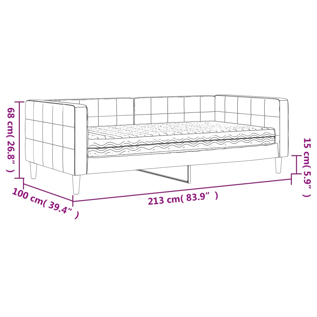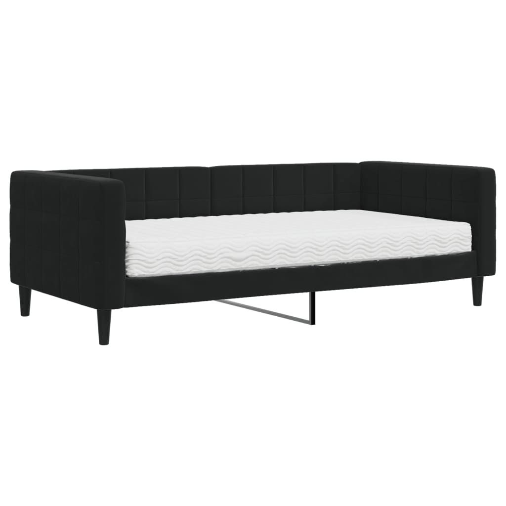 Dieses 2-in-1-Tagesbett mit Matratze, das sowohl als Sofa als auch als Bett dient, ist eine praktische und auffällige Ergänzung zu deinem Wohn- oder Schlafzimmer. Vielseitiges Tagesbett: Das Schlafsofa kann tagsüber als Sofa und nachts als Bett verwendet werden, um Übernachtungsgästen einen gemütlichen Schlafplatz zu bieten.Komfortable Schaumstoffmatratze: Dieses Bett wird samt einer Schaumstoffmatratze geliefert, die maximalen Halt und optimalen Komfort bietet.Weicher Samt und robuste Konstruktion: Dieses Schlafsofa besitzt einen stabilen Rahmen aus Holz und Metall und ist mit weichem und bequemem Samt bezogen.Modernes Design: Das Couchbett weist ein modernes Design auf, das sich durch klare Linien, einen minimalistischen Look sowie Natürlichkeit auszeichnet und deiner Einrichtung eine moderne Note verleiht!
