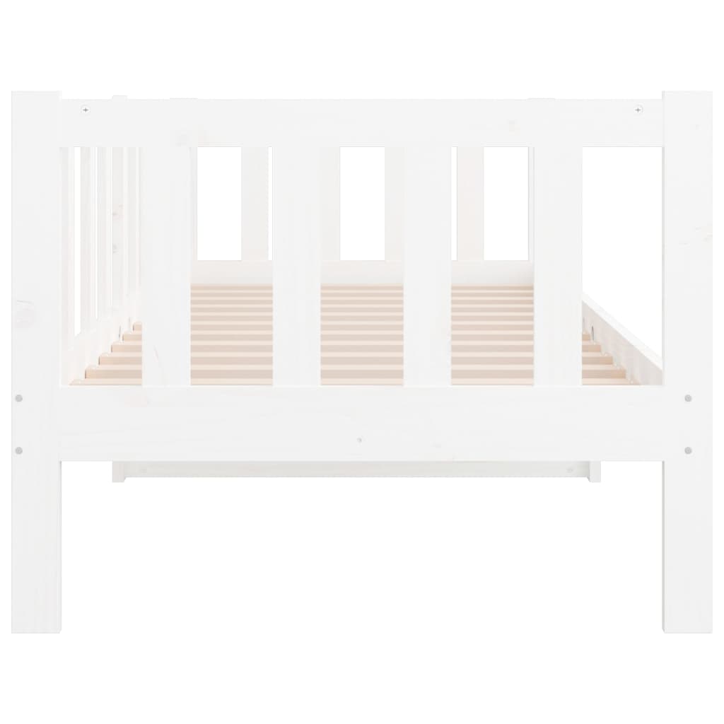 Dieses vielseitige Tagesbett kann sowohl als Bett im Schlafzimmer verwendet werden, als auch als Sofa im Wohnzimmer dienen. Es erfüllt die unterschiedlichsten Bedürfnisse und bietet viel Platz zum Schlafen oder Ausruhen. Massives Kiefernholz: Massives Kiefernholz ist ein wunderschönes Naturmaterial. Kiefernholz weist eine gerade Maserung auf und die Aststellen verleihen dem Material seine charakteristische, rustikale Optik. Aus massivem Kiefernholz gefertigt, ist dieses Gästebett stabil und langlebig. Bettgitter auf 3 Seiten: Mit seinen seitlichen Bettgittern vermittelt dieses Gästebett ein Gefühl der Sicherheit und verleiht deinem Zuhause auch einen Hauch von raffiniertem Stil. Latten-Design: Der Lattenrost sorgt für eine bessere Luftzirkulation, um die Matratze länger frisch zu halten, verbessert die Gewichtsverteilung und sorgt für Stabilität. Vielseitig einsetzbar: Dieses Tagesbett aus Holz kann tagsüber als Sofa und nachts als Bett verwendet werden, um Übernachtungsgästen einen gemütlichen Schlafplatz zu bieten. Zusätzlicher Stauraum: Nutze den Platz unter dem Bett, um verschiedene Sachen zu verstauen. Perfekt für die Aufbewahrung von Kisten, um deine Kleidung, Spielsachen oder Steppdecken zu organisieren. Hinweis: Die Lieferung beinhaltet nur einen Bettrahmen. Die Matratze ist nicht enthalten. In unserem Shop finden Sie auch passende Matratzen.Jedes Produkt wird mit einer Montageanleitung in der Verpackung für eine einfache Montage geliefert.