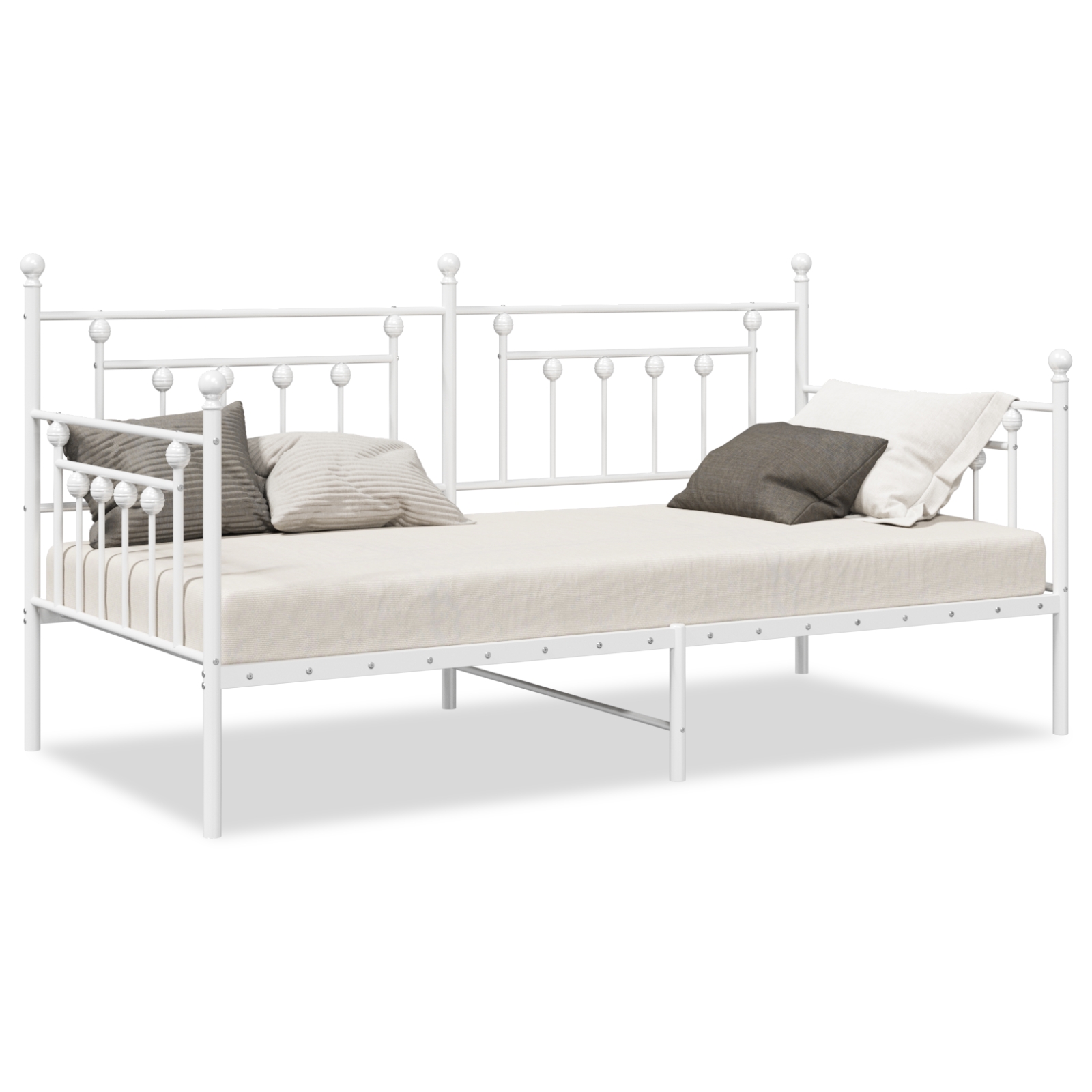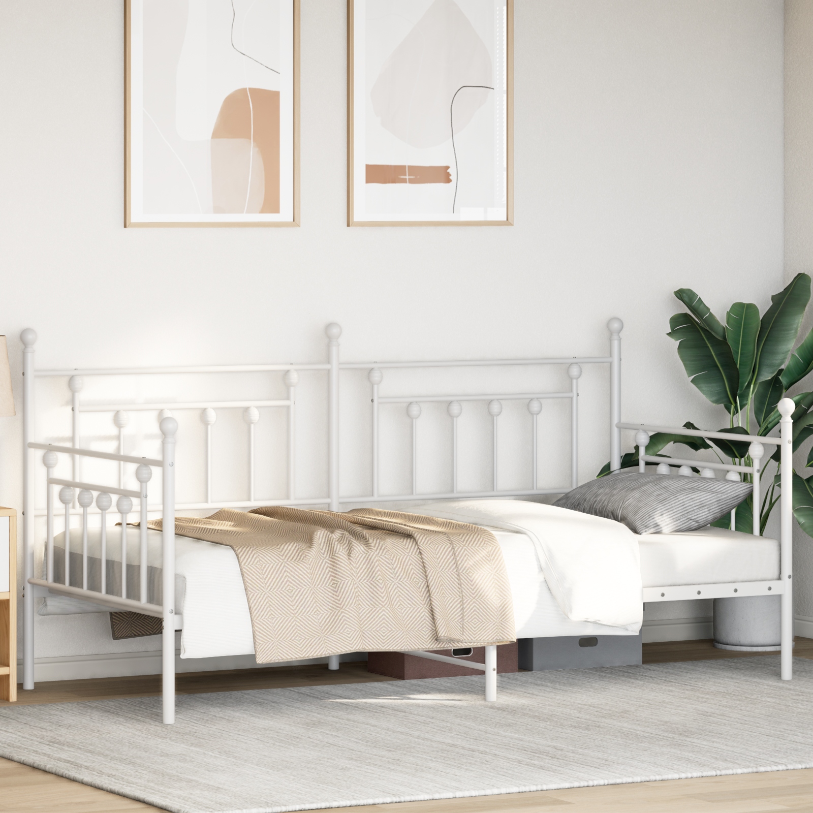 Dieses minimalistische Metallbettgestell vereint Stil und Praktikabilität. Es ist für Erwachsene konzipiert und hat eine schlanke, schlichte Optik, die perfekt in jedes moderne Schlafzimmer passt. Robuste Bauweise: Hergestellt aus hochwertigem Metall, ist dieses Bettgestell stark und stabil. Du kannst ruhig schlafen, ohne dir Gedanken über Abnutzung zu machen. Schlichte Ästhetik: Die glatte, weiße Oberfläche hebt das Aussehen deines Raums hervor und passt zu verschiedenen Stilen, von modern bis klassisch. Es lässt dein Schlafzimmer größer und einladender erscheinen. Sparsame Gestaltung: Mit 90 x 200 cm eignet sich dieses Gestell perfekt für kleine Wohnräume und bietet Komfort, ohne zu viel Platz zu belegen. Besonders nützlich für Studio-Apartments oder Gästezimmer. Kein Bedarf für einen Bettkasten: Als freistehende Einheit ist es leicht zu installieren und zu handhaben. Es sieht aufgeräumt aus, ohne zusätzliche Teile, und hält deinen Raum ordentlich. Für eine Person geeignet: Entwickelt für Erwachsene, bietet dieses Bettgestell genügend Platz für einen erholsamen Schlaf und sorgt für Komfort und Unterstützung zur perfekten Entspannung.