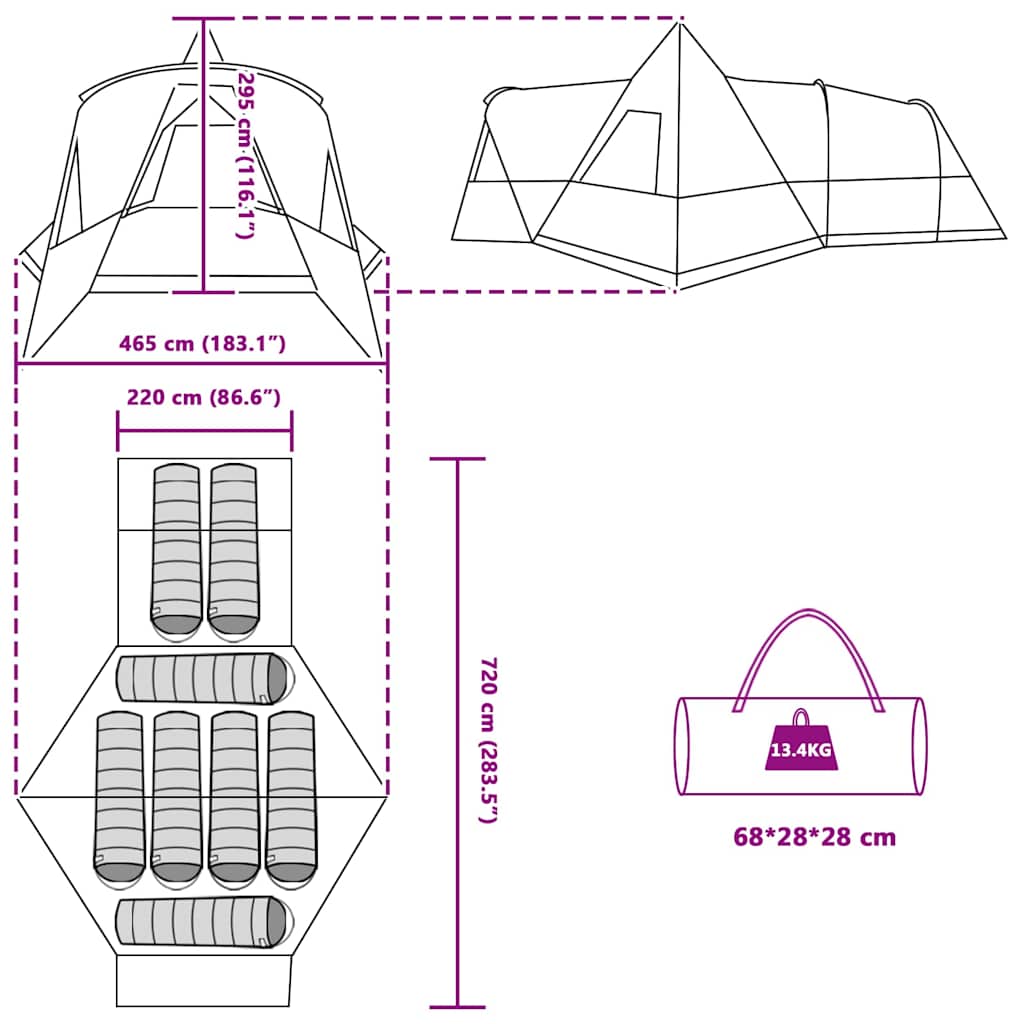 - Gesamtabmessungen: 720 x 465 x 295 cm (L x B x H)