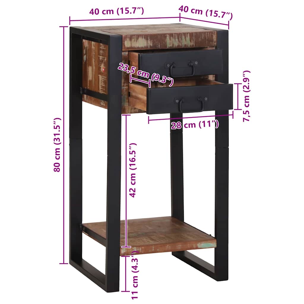Dieser Beistelltisch aus Altholz ist eine geniale Mischung aus Nachhaltigkeit und Stil. Er passt perfekt in jedes Wohnzimmer oder Schlafzimmer. Aus solidem Altholz mit einem schwarzen Metallrahmen hergestellt, hat dieser Tisch eine rustikale Ausstrahlung, die gut in verschiedene Innenräume passt. Dieser Beistelltisch bringt beeindruckenden rustikalen Stil in jeden Raum und passt zu verschiedenen Einrichtungsstilen. Die besondere, veraltete Oberfläche und die strukturierte Fläche sorgen für optisches Interesse. Zwei klassische Schubladen mit mattschwarzen Metallgriffen und ein geräumiges Regal aus Altholz bieten dir praktischen Stauraum. Hergestellt aus solidem Altholz und einem stabilen schwarzen Metallrahmen, ist er echt alltagstauglich. Jedes Detail zeigt die hohe Qualität der Handarbeit. Durch seine kompakten Maße fügt er sich optimal in viele Setups ein und erfüllt verschiedene Funktionen - vom Seitentisch für Getränke bis hin zur Bühne für Deko. Einfach in jedes Design zu integrieren, ist er eine großartige Option für alle, die ihre Einrichtung ganz leicht aufpeppen wollen.