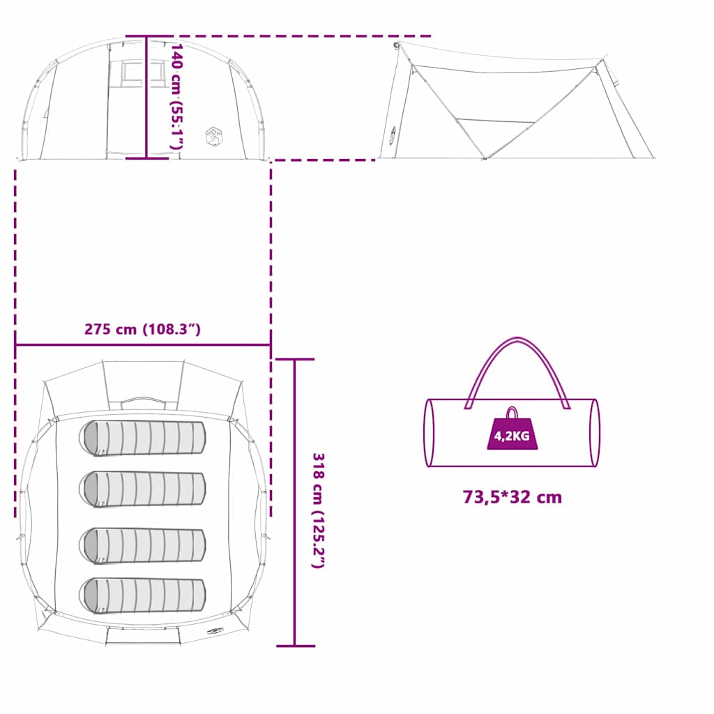 Dieses moderne Tunnelzelt bringt frischen Wind ins Camping. Hier trifft stylisches Design auf praktische Funktionalität. Perfekt für Camper, die Minimalismus lieben, aber auf Komfort nicht verzichten wollen. Es bietet Platz für Familie und Freunde und sorgt für unvergessliche Erlebnisse unter dem Sternenhimmel. Die klaren Linien und coolen Details machen es ansprechend und einladend. Egal ob für ruhige Rückzugsorte oder lebhafte Camping-Abenteuer, es ist für jede Jahreszeit geeignet. Hochwertige Materialien: Hergestellt aus strapazierfähigem 185T Polyester mit PU-Beschichtung, hält dieses Zelt dem Wasser stand. Ideal für Regenfälle in Südostasien, europäische Nieselregen oder unvorhergesehene Regengüsse. Es schützt auch vor UV-Strahlung und sieht dabei auch nach längerer Nutzung noch prima aus. Einfacher Aufbau: Mit einem praktischen Reißverschluss ist das Zelt schnell aufzubauen und abzubauen. Eine innere Aufbewahrungstasche sorgt dafür, dass alles immer griffbereit ist. Die Abspannleinen und Erdspieße geben extra Stabilität, gerade bei windigem Wetter. Praktische Features: Ausgestattet mit einem Belüftungsfenster und einem praktischen E-Port, kannst du einfach Strom anschließen. Du kannst schnell auf- und abbauen, um Zeit beim Campen zu sparen. Der Haken für Lampen sorgt für gute Sicht und eine einladende Atmosphäre. Saisonale Flexibilität: Egal ob beim geschäftigen Sommer-Camping oder bei entspannten Wochenendausflügen – das anpassbare Design macht es einfach, in unterschiedlichen Klimazonen zu nutzen. Die schöne Optik fügt sich toll in Gärten oder auf Terrassen ein. Leicht zu reinigen: Halte das Zelt einfach mit einem feuchten Tuch sauber – es erfordert kaum Pflege und bleibt dabei schick. Diese unkomplizierte Reinigung zeigt, dass Bequemlichkeit und Langlebigkeit wichtig für das Design waren.