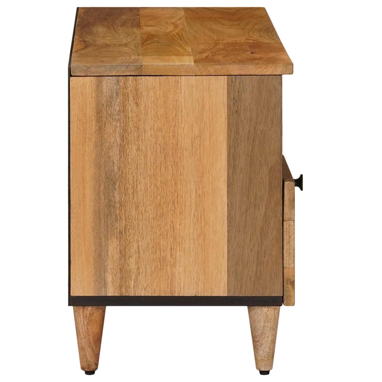 Der moderne TV-Schrank kombiniert Style und Funktionalität und wird so zum Highlight in jedem Wohnzimmer. Die schlanken, modernen Linien und der einfache Look bringen einen Hauch von Eleganz in deinen Raum, während er reichlich Platz für Medienzubehör, Bücher und andere wichtige Dinge bietet. Dank der rechteckigen Form aus massivem Mango-Holz sieht er robust aus und die Regalböden sowie die schicke Rückseite sorgen für zusätzliche Praktikabilität. Er lässt sich blitzschnell in jedes moderne Interior integrieren. Materialien: Der Schrank besteht aus hochwertigen Materialien, die für Langlebigkeit sorgen. Der Rahmen aus massivem Mango-Holz ist stark und sieht gut aus, während die Regale und die Rückseite aus Holzwerkstoffen und MDF sind. Diese Kombination bietet die perfekte Balance zwischen Stil und Pflegeleichtigkeit, was den Schrank zur besten Wahl für den Alltag im Wohnzimmer macht. Mitgelieferte Teile: Der Schrank ist mit praktischen Schubladen und Regalböden ausgestattet, ideal für deine Aufbewahrungsbedürfnisse. Die Schubladen lassen sich mit Handgriffen bequem bedienen, sodass du Mediengeräte oder persönliche Sachen schnell organisieren kannst. Die stabilen Holzbeine heben den Schrank an und mit der schicken Rückseite sieht er von jeder Seite gut aus. Funktionen, Nutzung, Design: Dieser TV-Schrank ist für moderne Wohnzimmer gedacht und hebt Einfachheit und Funktionalität hervor. Der große Oberbereich bietet Platz für die meisten Fernseher und das schlanke Profil passt perfekt zu minimalistischen Einrichtungen. Der Schrank lässt sich mit einem Schraubendreher schnell montieren und verbindet praktischen Nutzen mit elegantem Design. Empfohlene Anwendungen: Er ist vielseitig einsetzbar und fügt sich gut in verschiedene Wohnstile ein, sei es im Haus oder in der Gastronomie. Perfekt für das Wohnzimmer, hält er Mediengeräte, Deko oder Alltagsgegenstände ordentlich und unter Kontrolle, wodurch er zum Mittelpunkt des Raumes wird. Pflege & Reinigung: Halte den Schrank in Topform, indem du die Oberflächen mit einem trockenen Tuch abwischst und aggressive Chemikalien meidest. Die einfache Pflege verlängert die Lebensdauer, sodass er viele Jahre ein geschätztes Teil deines Zuhauses bleibt.