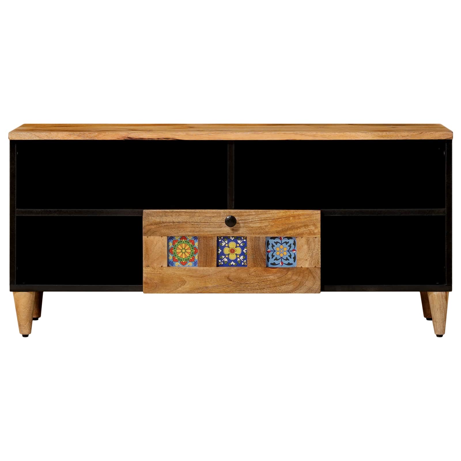 Dieser moderne TV-Schrank bringt Einfachheit und klaren Linienstil in dein Wohnzimmer. Er verbindet Funktionalität und Stil und ist die perfekte Ergänzung für jeden Raum. Er sieht nicht nur gut aus, sondern bietet auch praktische Aufbewahrungslösungen, die deinem modernen Zuhause gerecht werden. Die schlichte rechteckige Form sorgt für Ordnung, während er deinen Entertainment-Bereich aufwertet. Massivholz Mangorahmen: Der Rahmen des TV-Schranks aus massivem Mangoholz sorgt für Stabilität und bringt einen natürlichen Touch in dein Zuhause. Dieses Material garantiert Langlebigkeit und hält dem täglichen Gebrauch in einem belebten Wohnzimmer stand. Schlanke Schubladen mit Knöpfen: Mit den schlanken Knöpfen hast du schnellen Zugriff auf alles, wodurch das Organisieren ganz einfach wird. Dadurch bleibt deine Medientechnologie gut sortiert und ist easy erreichbar. Brettregale für vielseitige Aufbewahrung: Die Brettregale sind perfekt, um viel Stauraum zu schaffen. Egal, ob Medienplayer, Bücher oder Deko, die geräumigen Regale sind flexibel und behalten trotzdem einen ordentlichen Look. Veredeltes Rückenteil: Das Rückenteil ist nicht nur praktisch, sondern sieht auch gut aus. Es ist aus MDF gefertigt, was das Gesamtbild aufwertet und der Schrank kann ohne Wand vor ihm stehen. Montage erforderlich: Es gibt klare Anleitungen, die das Zusammenbauen mit zwei Personen und einem Schraubendreher einfach machen. Das macht den Aufbau zu einem schnellen und leichten Projekt für das Wochenende.