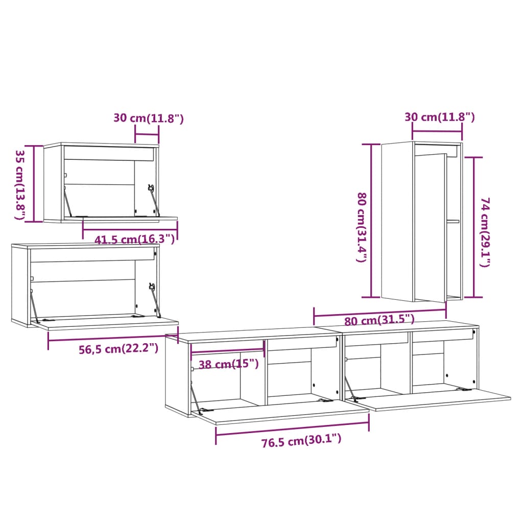 - 1 x TV-Schrank: 30 x 30 x 80 cm (B x T x H)