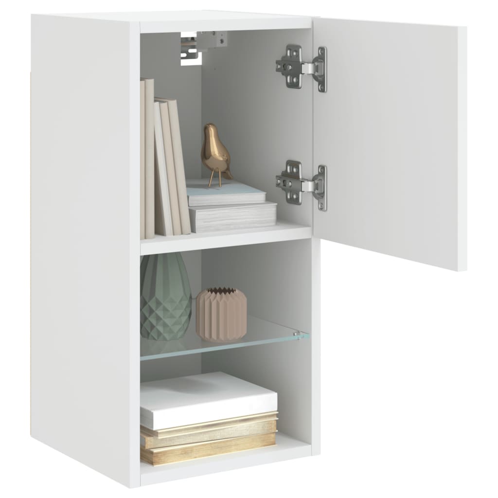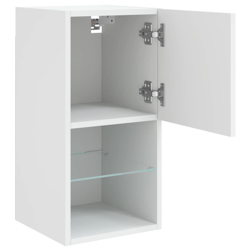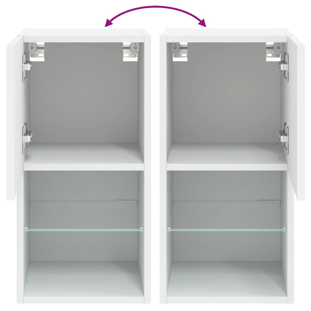 Mit ihrem trendigen und dennoch praktischen Design werden diese TV-Schränke mit LED-Leuchten echte Hingucker in deinem Zimmer sein. Langlebiges Material: Holzwerkstoff ist ein Material von außergewöhnlicher Qualität mit glatter Oberfläche, das sich durch Festigkeit, Stabilität und Feuchtigkeitsbeständigkeit auszeichnet. Aus Holzwerkstoff gefertigt, sind diese TV-Schränke robust und langlebig.Reichlich Stauraum: Die TV-Schränke bieten reichlich Stauraum, um DVD-Player, Empfänger, CDs und andere Kleinigkeiten gut organisiert und in Reichweite aufzubewahren.RGB-LED-Leuchten: Diese TV-Schränke sind mit RGB-LED-Leuchten ausgestattet, die über verschiedene Menüs verfügen, um die Farbe der Lichter zu wechseln und sie automatisch einzustellen.Wandmontage: Diese TV-Schränke lassen sich an der Wand montieren, um zusätzlichen Stauraum zu schaffen. Auf diese Weise kannst du deine Bodenfläche maximieren und für Ordnung im Raum sorgen. Gut zu wissen:Schrauben und Dübel für die Innenseite der Wand sind nicht enthalten. Wir empfehlen dir, Schrauben und Dübel zu finden und zu verwenden, die speziell für deine Wände geeignet sind. Wenn du dir nicht sicher bist, kannst du dich an einen Fachmann wenden. Bitte lies und befolge jeden Schritt in der Anleitung.Das Produkt verfügt über einen USB-Anschluss, für den eine zertifizierte 5V-USB-Stromquelle erforderlich ist (nicht im Lieferumfang enthalten).