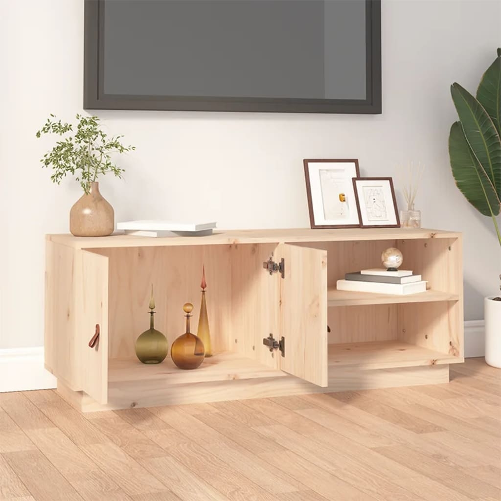 Mit seinem stilvollen und praktischen Design ist dieser TV-Schrank aus Holz eine ausgezeichnete Wahl für deinen Wohnraum. Massives Kiefernholz: Massives Kiefernholz ist ein wunderschönes Naturmaterial. Kiefernholz weist eine gerade Maserung auf und die Aststellen verleihen dem Material seine charakteristische, rustikale Optik. Aus Massivholz gefertigt, ist dieser TV-Schrank äußerst stabil. Viel Stauraum: Das TV-Möbel bietet reichlich Platz, um DVDs, Spielekonsolen, Zeitschriften und andere Gegenstände griffbereit und übersichtlich aufzubewahren. Stabile Oberplatte: Die Oberplatte dieses Medienschranks bietet den idealen Platz, um Gegenstände wie Lieblingsfotos, Dekorationen oder Blumen zur Schau zu stellen. Hinweis:Jedes Produkt wird mit einer Montageanleitung in der Verpackung für eine einfache Montage geliefert.