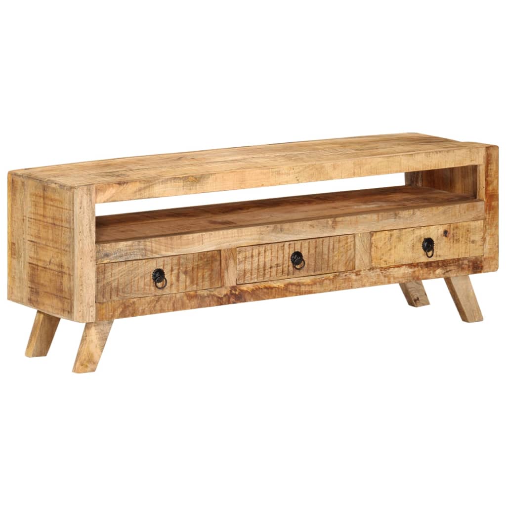 Dieser stilvolle TV-Schrank aus Holz ist sehr praktisch und auch eine tolle Bereicherung für Ihr Wohn- oder Schlafzimmer. Das aus massivem Mangoholz gefertigte Möbelstück ist äußerst langlebig und leicht zu reinigen. Gebrauchsspuren und die sichtbare Maserung erzählen die reiche Geschichte des Holzes und verleihen jedem TV-Schrank einen einzigartigen Look. Jeder Schritt des Fertigungsprozesses wird mit größter Sorgfalt durchgeführt, sei es Rekombinieren, Polieren, Lackieren oder Wachsen. Der Schrank ist mit 3 Schubladen und 1 Ablage ausgestattet, die reichlich Stauraum für Ihre persönlichen Gegenstände bieten. Wichtiger Hinweis: Die Farben variieren von Möbelstück zu Möbelstück, somit ist es im Grunde genommen ein Unikat. Die Lieferung erfolgt nach dem Zufallsprinzip.