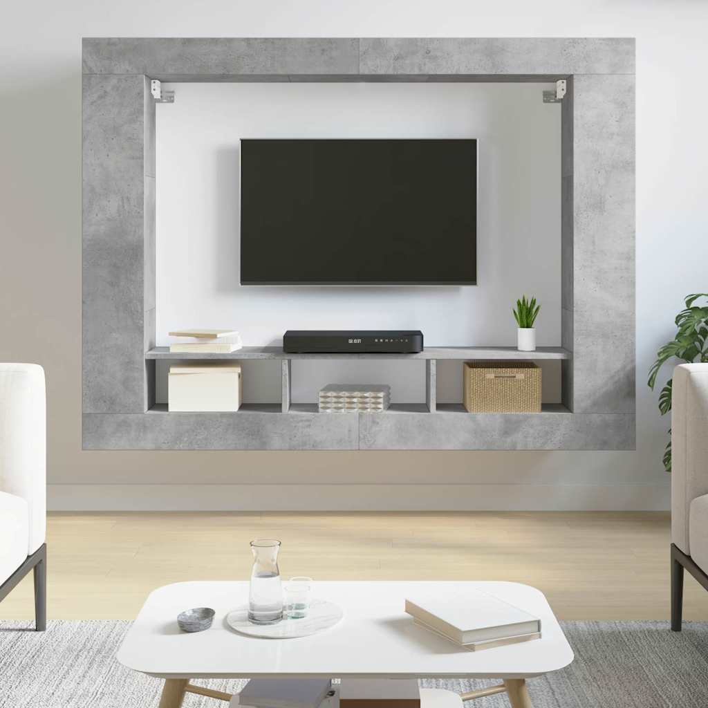 Mit seinem trendigen und dennoch praktischen Design wird dieses robuste TV-Möbel ein echter Hingucker in jedem Zimmer sein. Langlebiges Material: Holzwerkstoff ist ein Material von außergewöhnlicher Qualität mit glatter Oberfläche, das sich durch Festigkeit, Stabilität und Feuchtigkeitsbeständigkeit auszeichnet. Aus Holzwerkstoff gefertigt, ist dieser TV-Ständer robust und langlebig. Reichlich Stauraum: Der TV-Schrank bietet reichlich Stauraum, um DVD-Player, Empfänger, Disketten und andere kleine Gegenstände gut organisiert und in Reichweite aufzubewahren. Wandmontage: Dieser Medienschrank lässt sich einfach an der Wand befestigen und nimmt daher keine Bodenfläche ein.Präsentation: Die seitlichen Ablagen bieten den perfekten Platz für Bilderrahmen, Topfpflanzen und andere Dekoartikel. Gut zu wissen:Schrauben und Dübel sind für die Befestigung an der Wand nicht im Lieferumfang enthalten. Wir empfehlen, speziell für deine Wände geeignete Schrauben und Dübel zu finden und zu verwenden. Im Zweifelsfall wende dich an einen Fachmann. Bitte lese und befolge jeden Schritt der Anweisungen.