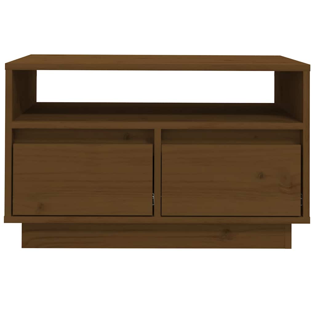 Dieser TV-Schrank aus Holz wird ein echter Hingucker in Ihrem Wohnraum sein. Aus massivem Kiefernholz gefertigt, besitzt das Lowboard eine stabile und langlebige Konstruktion. Mit einem offenen Fach und 2 Schubladen ausgestattet, bietet der TV-Schrank den idealen Platz, um DVDs, Spielkonsolen, Zeitschriften und andere Sachen ordentlich aufzubewahren. Darüber hinaus lässt er sich mit einem feuchten Tuch ganz einfach reinigen.