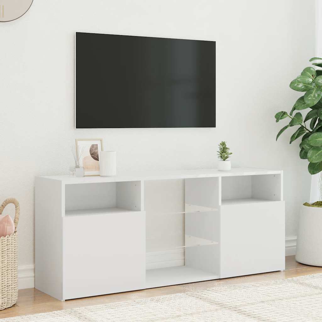 Mit seinem trendigen und zugleich praktischen Design wird dieser TV-Schrank mit LED-Leuchten definitiv zum Blickfang in Ihrem Zimmer. Die robuste Konstruktion dieses TV-Tisches sorgt für Stabilität und Langlebigkeit. Der Fernsehschrank bietet ausreichend Platz, um Ihren DVD-Player, Ihre Spielekonsole, Ihr Streaming-Gerät und Ihre Medienträger ordentlich zu verstauen. Dieser TV-Ständer ist mit RGB-LED-Beleuchtung ausgestattet, die über verschiedene Menüs verfügt, um die Leuchtfarbe zu ändern und diese automatisch einzustellen. Die LED-Beleuchtung unterstreicht den modernen Look und trägt zu einem trendigen Feeling bei. Außerdem lässt sich dieses TV-Möbel leicht mit einem feuchten Tuch sauber halten. Hinweis:Das Produkt hat einen USB-Anschluss, aber die zertifizierte 5-V-USB-Stromquelle ist nicht im Lieferumfang enthalten.