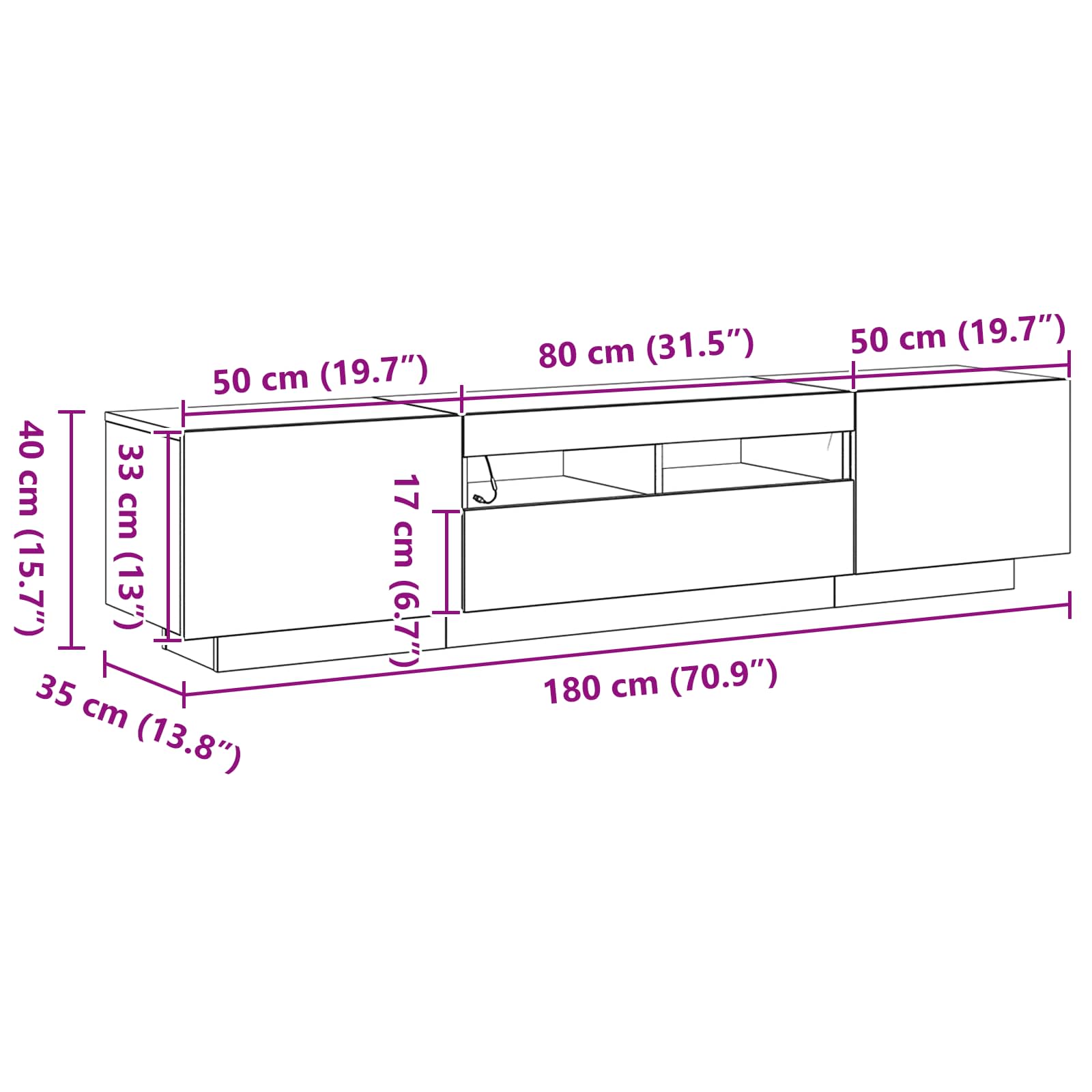 - Gesamtabmessungen: 180 x 35 x 40 cm (L x B x H)