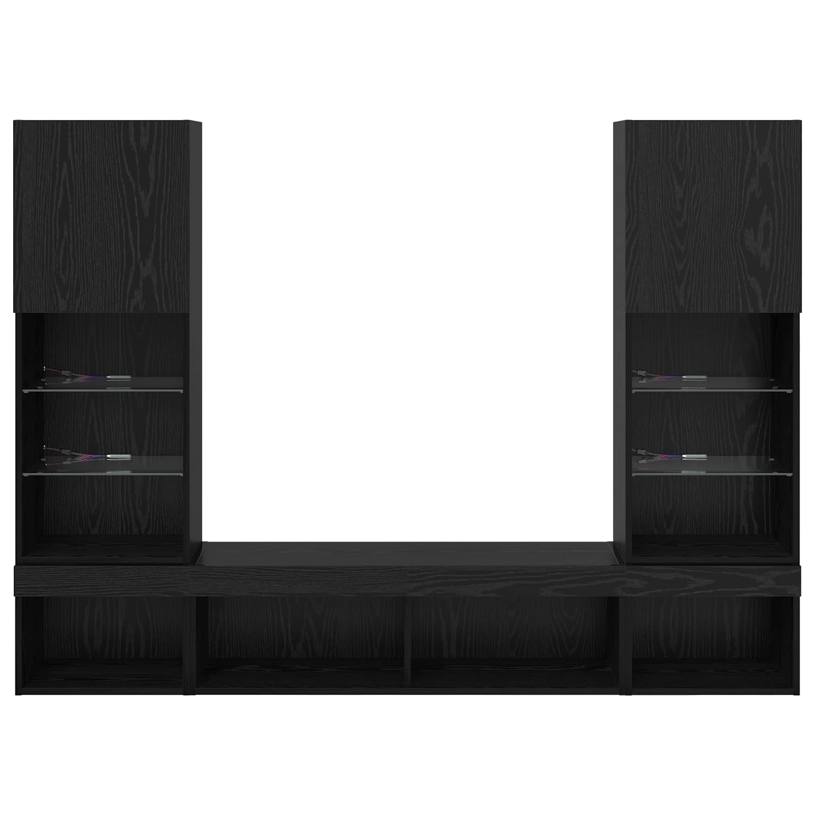 Dieses TV-Wandregal mit LED ist perfekt, um deinen Wohnraum in einen modernen Ort zu verwandeln. Es vereint Stil und Funktionalität und hat eine schlanke rechteckige Struktur, die zeitgenössische Deko super ergänzt und optimalen Platz schafft. Mit seinem wandmontierten Design nutzt die Einheit den Raum ganz clever aus, was sie für kleine oder große Wohnbereiche ideal macht. Die LED-Beleuchtung bringt eine schicke Note und sorgt für ein warmes Ambiente, das dein Seherlebnis verbessert. Nutze es, um deinen Fernseher zu präsentieren, Mediengeräte ordentlich zu verstauen und Deko stylisch in Szene zu setzen. Robuste Holzverarbeitung: Hergestellt aus abriebfestem Holzwerkstoff, garantiert dieses TV-Wandregal Langlebigkeit und hat eine glatte, schicke Oberfläche. Holzwerkstoff ist dafür bekannt, stabil und strapazierfähig zu sein, was es perfekt für vielbeschäftigte Haushalte macht. Flexibles Regalangebot: Mit Holz- und Glasregalen bietet diese Einheit viele Aufbewahrungsmöglichkeiten. Die Holzregale sind ideal für größere Gegenstände, während die Glasregale einen modernen Look haben und super für empfindliche Sachen oder Elektronik geeignet sind. Diese Kombination deckt alle Aufbewahrungsbedürfnisse stylisch ab. LED-Lichtleiste: Eingebaute LED-Streifen verleihen deinem Wohnraum eine schicke Note und erzeugen ein einladendes Licht, das das Design der Einheit betont. Die LED-Lichter funktionieren über USB, sind flexibel und energieeffizient und lassen sich leicht an jede Stimmung anpassen. Schwenktüren: Die Schwenktüren aus Holzwerkstoff verstecken die Gegenstände perfekt und sorgen für ein sauberes, ordentlichen Look. Diese Türen geben einfachen Zugang zu den gelagerten Sachen, damit dein Wohnraum immer ordentlich bleibt. Einfache Montage: Die Montage der Einheit benötigt zwei Personen und einen Schraubendreher, was für einen easy Aufbau sorgt. Das Design ermöglicht eine einfache Installation und sichert die Einheit fest an der Wand für eine stabile und sichere Aufbewahrung, die das ganze Jahr über funktioniert.