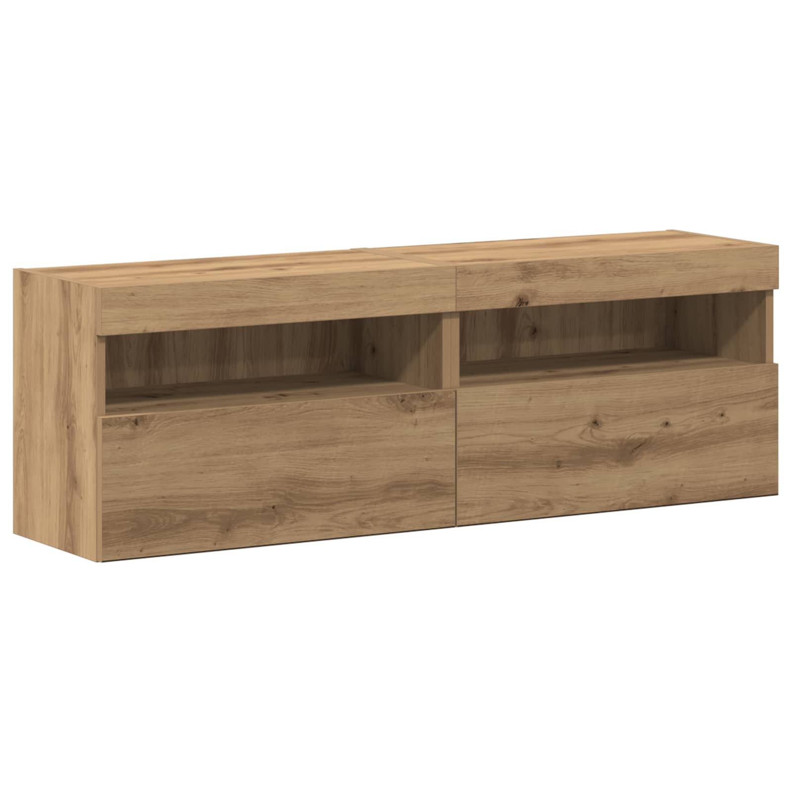 Dieses Set von TV-Wandeinheiten ist eine smarte und schicke Wahl, um dein Wohnzimmer oder deinen Entertainment-Bereich aufzuwerten. Mit ihrem modernen Finish in Artisan-Eiche und der integrierten LED-Beleuchtung bietet dieses Setup viel Stauraum für deine Geräte und wird zum Hingucker im Raum, der super zu verschiedenen Stilen passt. Erweiterbares Design: Du kannst die Wandeinheiten kinderleicht erweitern, wenn du mehr Stauraum brauchst, damit sie für verschiedene Größen von Mediengeräten und Dekoartikeln geeignet sind. Integrierte Beleuchtung: Die eingebauten LED-Lichter setzen deine Deko ins Rampenlicht und schaffen eine gemütliche Stimmung. Perfekt, um Freunde zu beeindrucken und eine kuschelige Atmosphäre für Filmabende zu schaffen. Moderne Oberfläche: Diese Einheiten sind aus langlebiger Artisan-Eiche mit einem strukturierten Finish, wodurch jedes Stück einen einzigartigen Look mit modernem Flair erhält. Viel Stauraum: Mit vielen Regalen, Schiebetüren und traditionellen Schubladen bietet dieser Schrank viel Platz für deine Elektronik und Deko, damit der Wohnbereich ordentlich bleibt, ohne den Stil zu verlieren. Hochwertiges Material: Hergestellt aus robustem MDF, sehen diese Einheiten nicht nur gut aus, sondern sind auch für die Ewigkeit gemacht, sodass du sie viele Jahre lang genießen kannst.