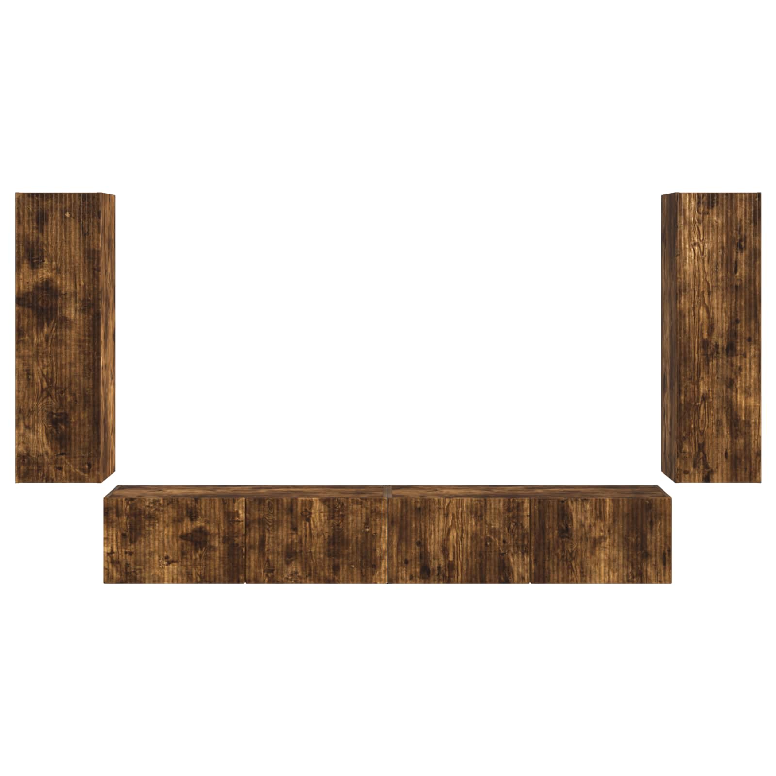 Dieses TV-Wandregal-Set verwandelt dein Wohnzimmer in ein modernes Unterhaltungszentrum, wo Funktionalität und Stil zusammenkommen. Die schlanke rechteckige Form und das wandmontierte Design sparen Platz und geben jedem Raum eine edle Note. Es organisiert deine Medienaccessoires und schafft eine saubere und aufgeräumte Umgebung, die dein Seherlebnis verbessert. Das stilvolle Holzwerkstoff fügt sich perfekt in zeitgenössische Interieurs ein und wird zum echten Blickfang deiner Einrichtung. Modernes wandmontiertes Design Das TV-Wandregal-Set bringt moderne Ästhetik mit einem wandmontierten Design, perfekt um deinen Wohnraum clever zu nutzen und für einen sauberen Look. Dieses schlanke Set ergänzt moderne Wohnzimmer und verbindet Funktionalität mit Stil – es wird zum Mittelpunkt deines Raums. Langlebigkeit und Qualität Aus Holzwerkstoff gemacht, garantiert dieses Regalset langfristige Haltbarkeit und Stabilität. Ideal für den täglichen Gebrauch, bleibt das Holz auch nach häufigem Einsatz in Topform. Die solide Bauweise bietet einen sicheren Rahmen für dein Entertainment-Equipment. Viel Stauraum Mit 90°-Pendeltüren bietet dieses Set Fächer, die helfen, Elektronik und Zubehör ordentlich zu verstauen. So versteckst du deine Sachen diskret und sorgst für einen aufgeräumten Look – perfekt für alle, die es ordentlich mögen. Einfache Wartung Die Pflege ist kinderleicht – ein einfaches Abwischen mit einem feuchten Tuch genügt, um das Regal in schickem Zustand zu halten. Diese einfache Routine sorgt dafür, dass das Regal dein stylisches Stück bleibt und macht die Pflege deiner Einrichtung mühelos. Perfekte Passform für Wohnzimmer Speziell für den Wohnbereich entworfen, ist dieses harmonisch zusammengestellte Set ideal, um deine Lieblingssendungen und -filme bequem zu genießen. Es wertet dein Seherlebnis auf und bietet einen coolen Rahmen für deinen Fernseher, während es die Optik und Funktionalität des Raums bewahrt.