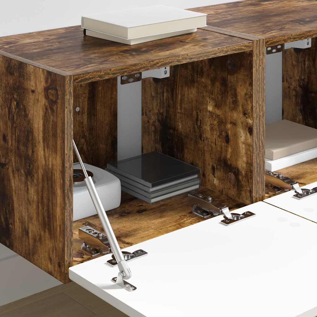Dieser moderne TV-Wandschrank ist der perfekte Mix aus Stil und Funktionalität. Er erfüllt die Bedürfnisse der heutigen Haushalte mit einem schlanken, minimalistischen Look. Ideal für Innenräume, integriert er sich super in die Wohnzimmer-Dekoration und bietet elegante Aufbewahrung für Mediengeräte und Zubehör. Durch seine klaren Linien und die kubische Form bringt er ein stilvolles und praktisches Element in dein Zuhause – perfekt für alle, die einen aufgeräumten Raum suchen. Ein klasse Stück für alle, die ihrem Wohnbereich einen feinen, anspruchsvollen Touch verpassen wollen. Holzwerkstoffkonstruktion: Der TV-Wandschrank ist aus hochwertigem Holzwerkstoff gefertigt und sorgt für eine zuverlässige und robuste Struktur. Das Material bringt dauerhafte Haltbarkeit und einen warmen Touch in dein Zuhause. Vielseitige Türen: Mit 90°-Schwingtüren, die den Zugang erleichtern und die Raumnutzung maximieren. Dieser durchdachte Designaspekt unterstützt das schicke Aussehen und die flexible Nutzung des Schranks. Wandmontierte Regale: Der Schrank bietet praktische, wandmontierte Regale, die Platz auf dem Boden sparen und gleichzeitig modern aussehen. Perfekt für kleinere Wohnzimmer oder urbane Räume, wo es auf Effizienz ankommt. Moderner Stil: Reduziert auf Einfachheit und Funktionalität, zeigt sein modernes Design klare Linien und wenig Schnickschnack, was ihn zum Mittelpunkt in jedem zeitgenössischen Zuhause macht. Mühelose Pflege: Pflegeleicht, einfach mit einem feuchten Tuch abwischbar, spart dir Aufwand und hält den Schrank stets in Top-Zustand.