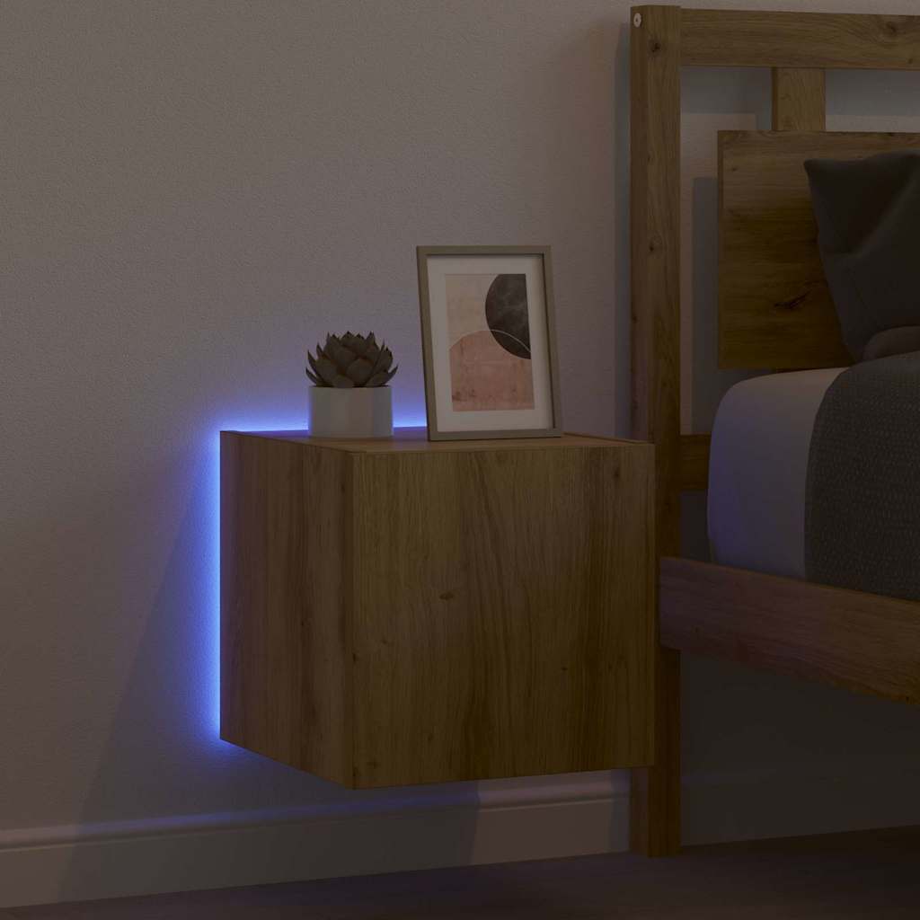 Dieser moderne TV-Wandschrank bringt einen coolen und zeitgemäßen Vibe in jedes Wohnzimmer. Mit klaren Linien und ohne viel Schnickschnack bietet er eine smart durchdachte Lösung zur Aufbewahrung von Technik und fügt sich super in dein Zuhause ein. Mit seinen innovativen Features und dem schicken Look wird dieser Schrank das Stil- und Funktionalitätsniveau deines Raumes ordentlich anheben. Holzwerkstoffstruktur Der moderne TV-Wandschrank besteht aus hochwertigem Holzwerkstoff und bietet einen stabilen und zuverlässigen Rahmen. Dadurch ist er robust und langlebig und verleiht jedem Raum einen zeitgenössischen Touch. Ideal für deine Technik! Vielseitige LED-Beleuchtung Mit bunten LED-Streifen, die die Farben wechseln können, sorgt dieser Schrank für eine coole Atmosphäre. Du kannst die Farben nach Stimmung oder Anlass anpassen für ein ganz individuelles Licht-Feeling. Platzsparende Konfiguration Dieser Schrank wird an der Wand montiert und nutzt so den vertikalen Platz gut aus. Das sorgt für mehr Freiraum am Boden und ist perfekt für moderne Wohnungen, in denen der Platz knapp ist. Praktische Features Die Türen mit Scharnieren machen den Zugang zu deiner Technik einfach. Auch die USB-betriebenen LED-Streifen sorgen für einfache Installation und Bedienung. Die Holzwerkstofftüren vereinen Langlebigkeit und Stil. Einfache Wartung Die Reinigung ist easy: Wisch einfach mit einem trockenen Tuch drüber, um Staub zu entfernen und das schicke Aussehen zu bewahren. Für den Aufbau sollten zwei Leute mit einem Schraubendreher bereit sein, um eine stabile Montage zu garantieren.
