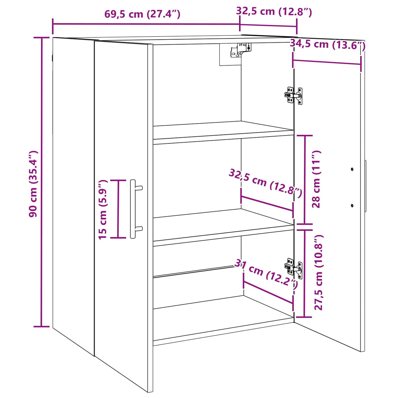 - Gesamtabmessungen: 69.5 x 32 x 90 cm (L x W x H)