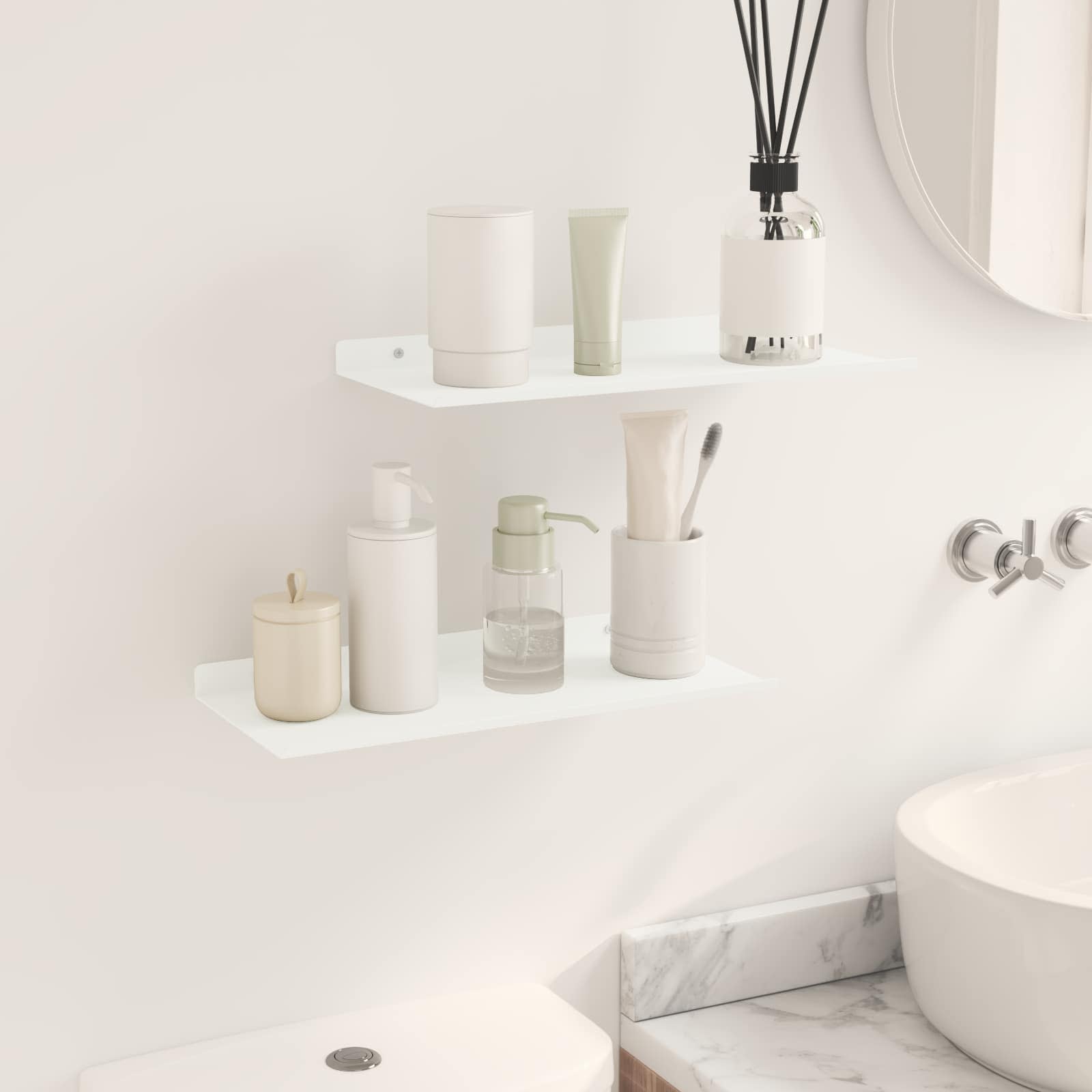 Dieses schlanke Wandregal kombiniert minimalistischen Stil mit modernem Design und ist ein echter Hingucker für jedes Zuhause. Die robuste Stahlkonstruktion und die glatte matte Oberfläche verleihen dem Regal eine elegante Note und gleichzeitig eine vielseitige Aufbewahrungslösung. Ideal für kleine Räume, hilft es den Nutzern, ihre Einrichtung zu verbessern, indem es den perfekten Platz für die Präsentation geliebter Dinge bietet. Ob im Wohnzimmer, Bad oder in der Küche – dieses praktische Regal peppt jedes Ambiente auf und verleiht ihm eine persönliche Note. Matte Stahlkonstruktion Das Wandregal besteht aus hochwertigem Stahl und bietet eine robuste und langlebige Struktur, die täglichen Belastungen standhält, ohne dabei an Style zu verlieren. Die matte Oberfläche schafft einen modernen Look und sorgt für eine glatte, nicht reflektierende Fläche, die sich super in zeitgenössische Interieurs integriert. Wandmontiertes Design Dieses Regal ist praktisch konzipiert und spart wertvollen Platz auf dem Boden, während es genug Stauraum bietet. Ideal für viele Räume, von Wohnbereichen bis hin zu Küchen, schafft es ein ordentliches und stilvolles Zuhause. Einfache Installation Das mitgelieferte Zubehör macht die Montage mit einfachen Haushaltswerkzeugen kinderleicht. Es wird empfohlen, zu zweit zu arbeiten, um sicherzustellen, dass das Regal fest sitzt, sodass du schnell und effizient dein gewünschtes Layout gestalten kannst. Vielseitige Nutzung Dieses Regal mit erhöhten Kanten ist perfekt für verschiedene Szenarien und eignet sich zur Ablage von Büchern, Vasen oder Toilettenartikeln. Regelmäßiges Abstauben mit einem feuchten Tuch hält das Regal frisch und sauber, ohne aggressive Reiniger zu benutzen, was es zu einem unauffälligen, aber effektiven Accessoire für dein Zuhause macht. Mühelose Pflege Die Pflege des eleganten Wandregals ist super einfach: Wische einfach ab, um Staub zu entfernen, und vermeide aggressive chemische Reinigungsmittel, um die Oberfläche zu schonen. Diese einfache Pflege-Routine sorgt für langfristige Freude und frisches Aussehen.