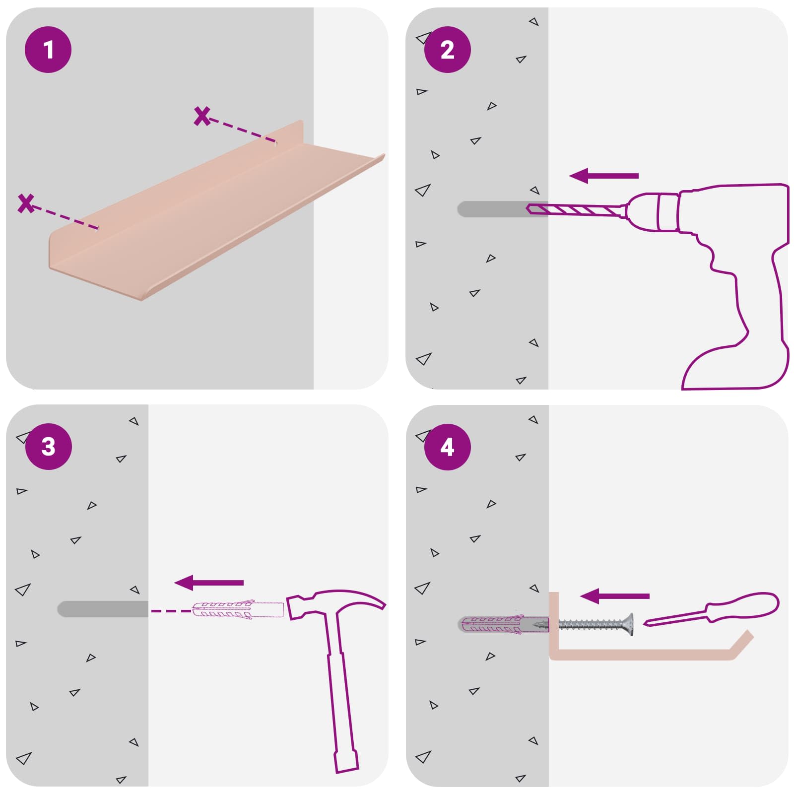 - 1 x Kurze Wandablage :30,9 x 9 x 2,5 (L x B x H)