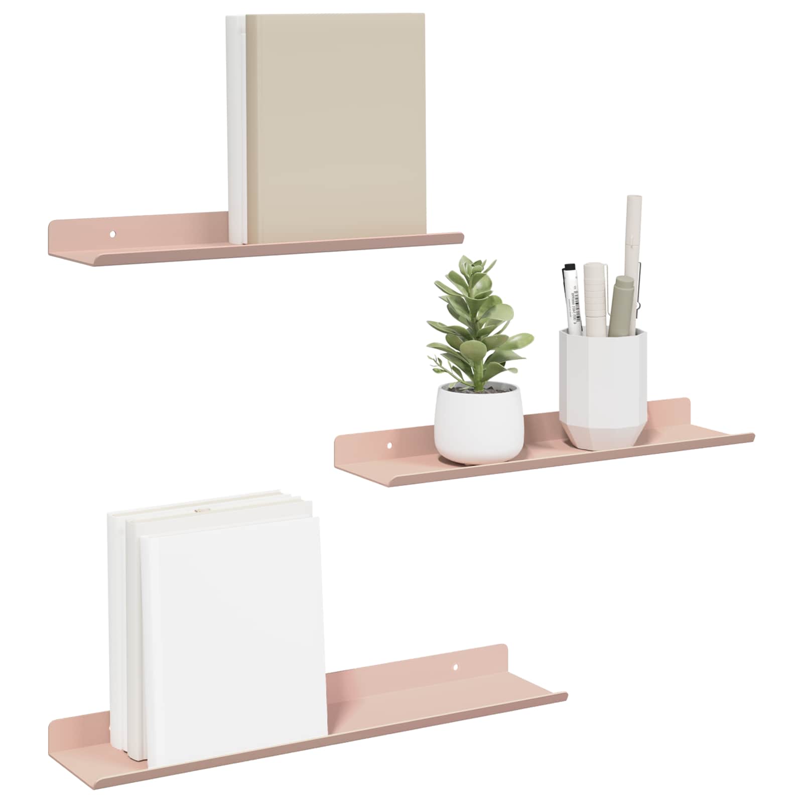 Dieses schlanke Wandregal kombiniert minimalistischen Stil mit modernem Design und ist ein echter Hingucker für jedes Zuhause. Die robuste Stahlkonstruktion und die glatte matte Oberfläche verleihen dem Regal eine elegante Note und gleichzeitig eine vielseitige Aufbewahrungslösung. Ideal für kleine Räume, hilft es den Nutzern, ihre Einrichtung zu verbessern, indem es den perfekten Platz für die Präsentation geliebter Dinge bietet. Ob im Wohnzimmer, Bad oder in der Küche – dieses praktische Regal peppt jedes Ambiente auf und verleiht ihm eine persönliche Note. Matte Stahlkonstruktion Das Wandregal besteht aus hochwertigem Stahl und bietet eine robuste und langlebige Struktur, die täglichen Belastungen standhält, ohne dabei an Style zu verlieren. Die matte Oberfläche schafft einen modernen Look und sorgt für eine glatte, nicht reflektierende Fläche, die sich super in zeitgenössische Interieurs integriert. Wandmontiertes Design Dieses Regal ist praktisch konzipiert und spart wertvollen Platz auf dem Boden, während es genug Stauraum bietet. Ideal für viele Räume, von Wohnbereichen bis hin zu Küchen, schafft es ein ordentliches und stilvolles Zuhause. Einfache Installation Das mitgelieferte Zubehör macht die Montage mit einfachen Haushaltswerkzeugen kinderleicht. Es wird empfohlen, zu zweit zu arbeiten, um sicherzustellen, dass das Regal fest sitzt, sodass du schnell und effizient dein gewünschtes Layout gestalten kannst. Vielseitige Nutzung Dieses Regal mit erhöhten Kanten ist perfekt für verschiedene Szenarien und eignet sich zur Ablage von Büchern, Vasen oder Toilettenartikeln. Regelmäßiges Abstauben mit einem feuchten Tuch hält das Regal frisch und sauber, ohne aggressive Reiniger zu benutzen, was es zu einem unauffälligen, aber effektiven Accessoire für dein Zuhause macht. Mühelose Pflege Die Pflege des eleganten Wandregals ist super einfach: Wische einfach ab, um Staub zu entfernen, und vermeide aggressive chemische Reinigungsmittel, um die Oberfläche zu schonen. Diese einfache Pflege-Routine sorgt für langfristige Freude und frisches Aussehen.