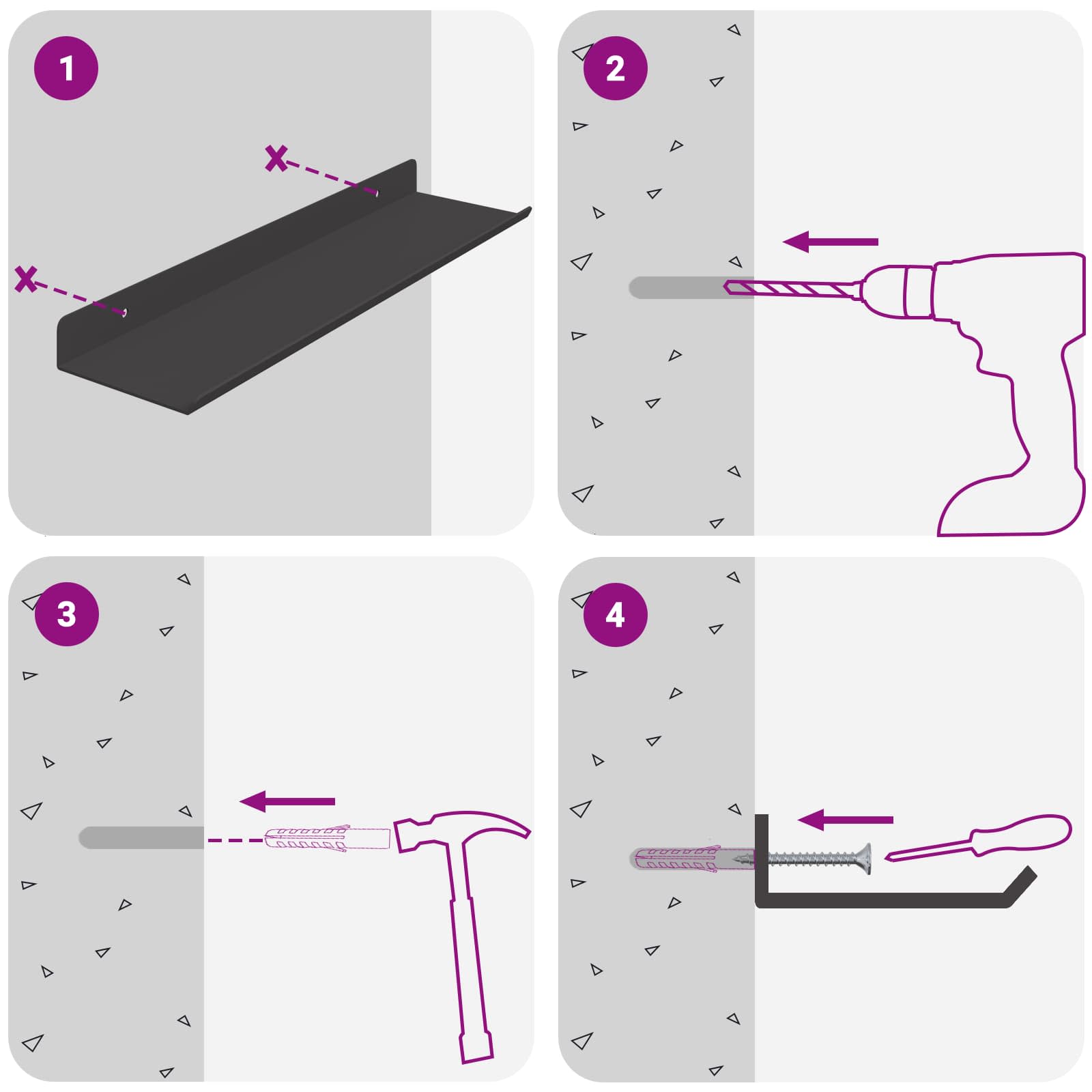 - 1 x Kurze Wandablage :30.9 x 9 x 2.5 (L x B x H)