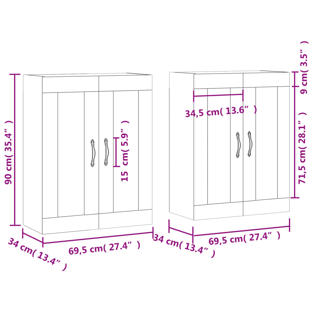 - Abmessungen (pro Stück): 69,5 x 34 x 90 cm (B x T x H)