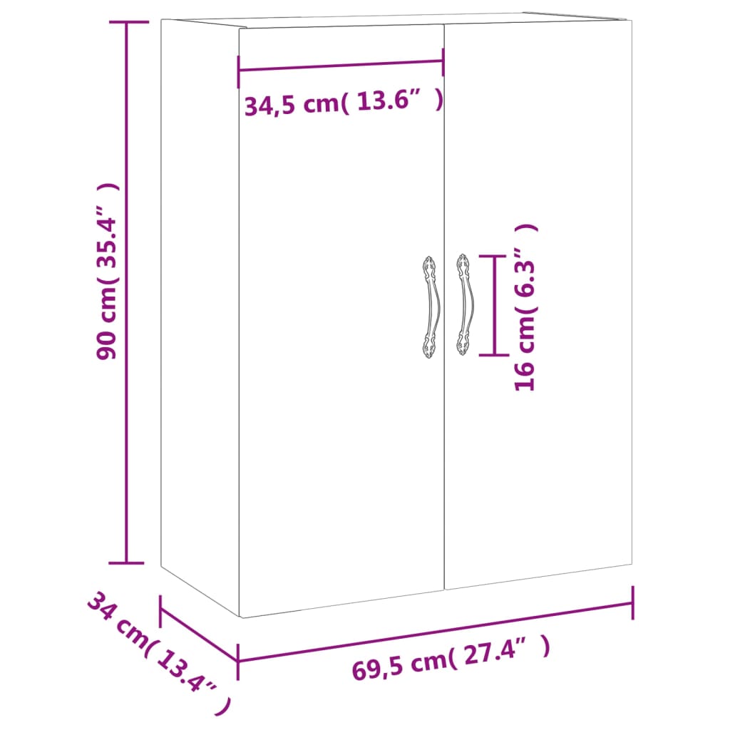 Mit seinem eleganten Design ist dieser Wandschrank eine zeitlose Bereicherung für deine Inneneinrichtung. Langlebiges Material: Holzwerkstoff ist ein Material von außergewöhnlicher Qualität mit glatter Oberfläche, das sich durch Festigkeit, Stabilität und Feuchtigkeitsbeständigkeit auszeichnet. Aus Holzwerkstoff gefertigt, ist dieser Schrank robust und langlebig. Viel Stauraum: Der Hängeschrank bietet viel Platz, um verschiedene Alltagssachen gut organisiert und in Reichweite aufzubewahren.Wandmontage: Der Hängeschrank nimmt keine Bodenfläche ein. Du kannst ihn einfach an der Wand montieren.Praktisches Design: Schütze deine wichtigsten Sachen vor Staub, indem du sie hinter den Türen verstaust. Dank der Griffe lässt sich der Beistellschrank leicht öffnen.Vielseitiger Schrank: Du kannst diesen Schwebeschrank auch auf ein Sideboard stellen, um ein Highboard zu bilden und so zusätzlichen Stauraum zu schaffen. Durch sein schlichtes Design eignet er sich für dein Wohnzimmer, Schlafzimmer, Arbeitszimmer und jeden anderen Wohnbereich. Gut zu wissen:Schrauben und Dübel sind für die Befestigung an der Wand nicht im Lieferumfang enthalten. Wir empfehlen, speziell für deine Wände geeignete Schrauben und Dübel zu finden und zu verwenden. Im Zweifelsfall wende dich an einen Fachmann. Bitte lese und befolge jeden Schritt der Anweisungen.