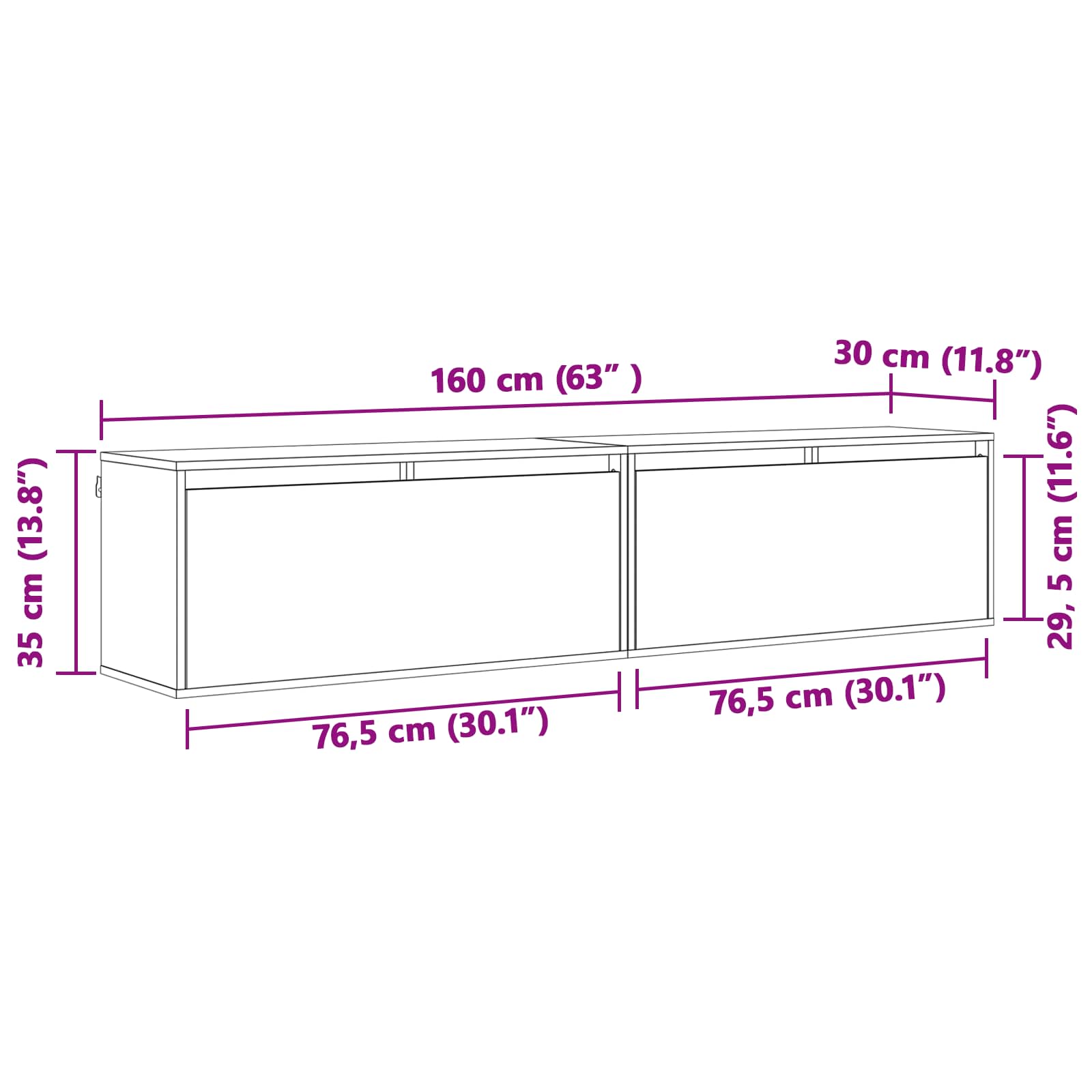 - Gesamtabmessungen: 80 x 30 x 35 cm (L x B x H)