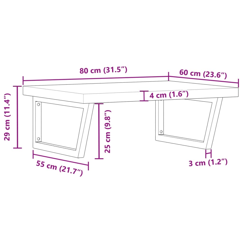 Das Regal lässt sich sicher an der Wand befestigen und bietet eine elegante und platzsparende Lösung für dein Badezimmer. Robust und langlebig: Dieses Waschbeckenregal besteht aus Stahlhalterungen und einer Oberplatte aus massivem Akazienholz, was es robust, stabil und langlebig macht.Platzsparend: Das Schweberegal bietet reichlich Platz für Cremes und Kleinigkeiten. Dank der Trapezform der Halterungen lassen sich auch Handtücher oder andere Sachen platzsparend darauf aufhängen.Einfache Verwendung: Die Holzplatte ist nicht vorgebohrt, sodass dein Waschbecken je nach Bedarf links, rechts oder in der Mitte angebracht werden kann. Dank der vorgebohrten Löcher in der Halterung lässt sich die Ablage am Waschtisch oder an der Wand mühelos befestigen.Vielseitig einsetzbar: Dank ihres modernen Designs schafft die Ablage zusätzlichen Stauraum und fügt sich harmonisch in die unterschiedlichsten Einrichtungen ein. Gut zu wissen:Die Schrauben sind nicht im Lieferumfang enthalten. Du kannst die Schrauben anhand von den folgenden Informationen separat erwerben.Wandbefestigung: 2 x M8-Dehnschraube pro HalterungHolzplatte: 2 x M5x18-Schraube (T=2) oder 2 x M5x20-Schraube (T=2,5/4 cm) pro Halterung